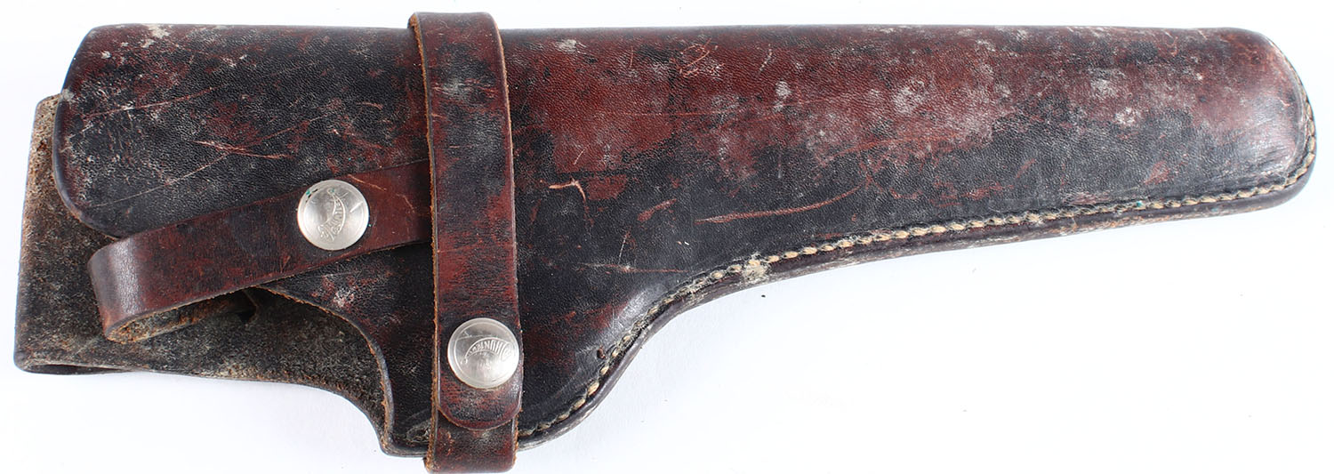 Hunter Leather pistol holster, # 1100 26, has age soiling. Grade: Very Good - Value: 10 to 50