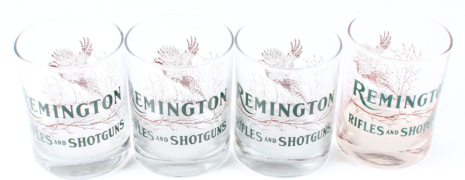 Lot of 4 Remington glass cups. Grade: Excellent - Value: 10 to 50
