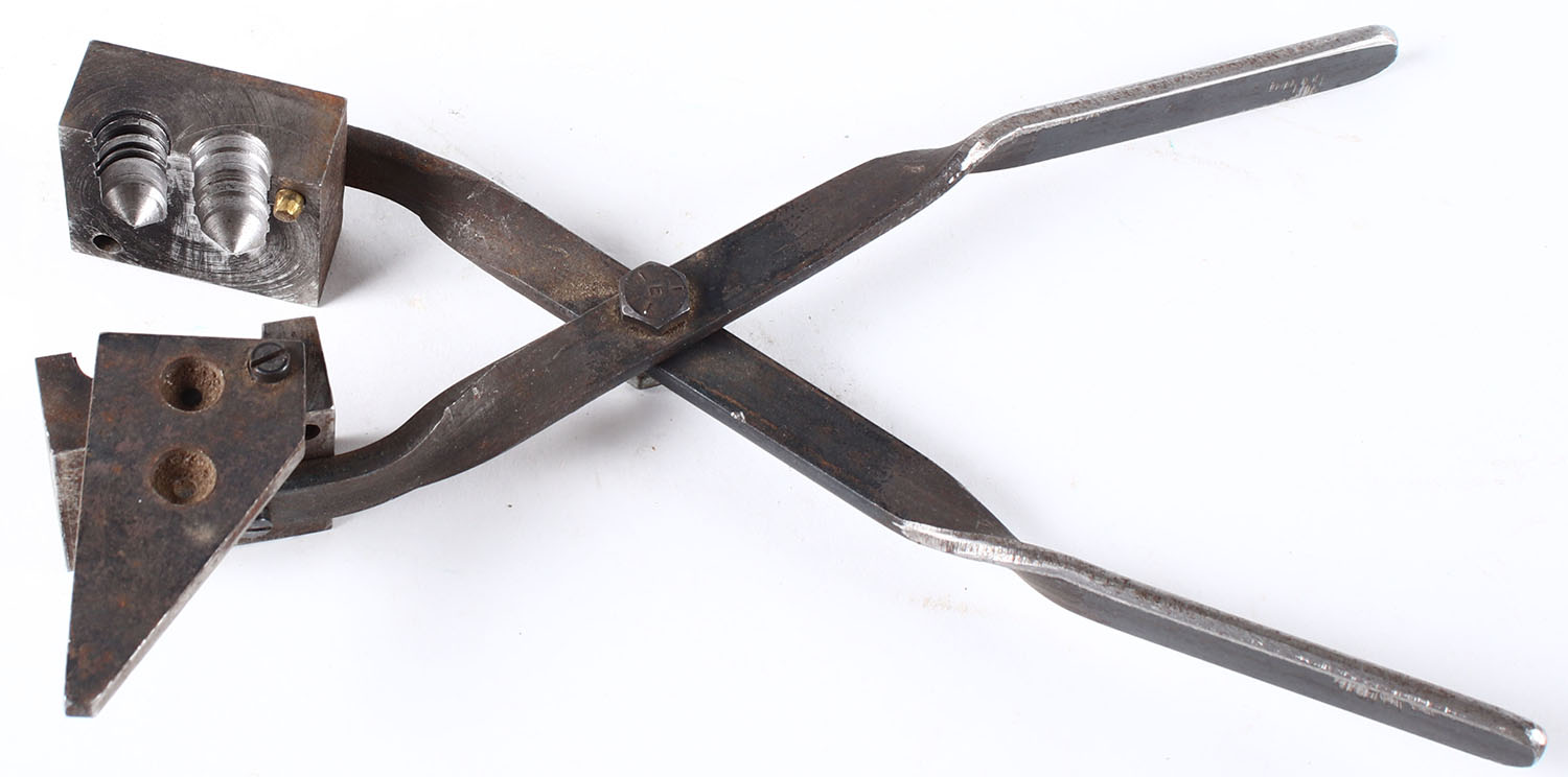 Unmarked bullet mold reloading tool, double cavity g rooved mold. Grade: Very Good ++ - Value: 20 to 80