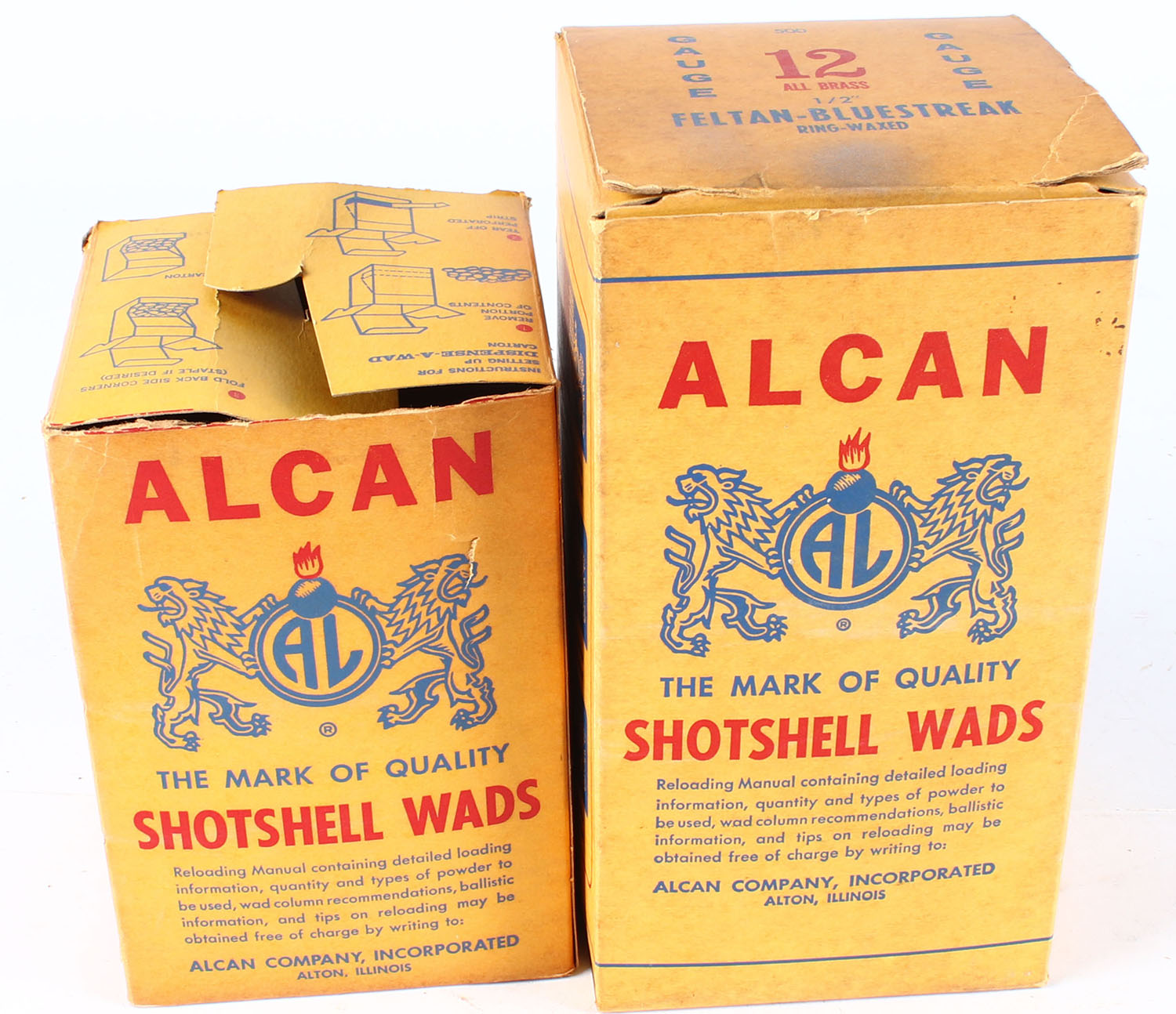 Lot of 2 Alcan 12 ga cardboard wads, all full. Grade: Very Good - Value: 2 to 40