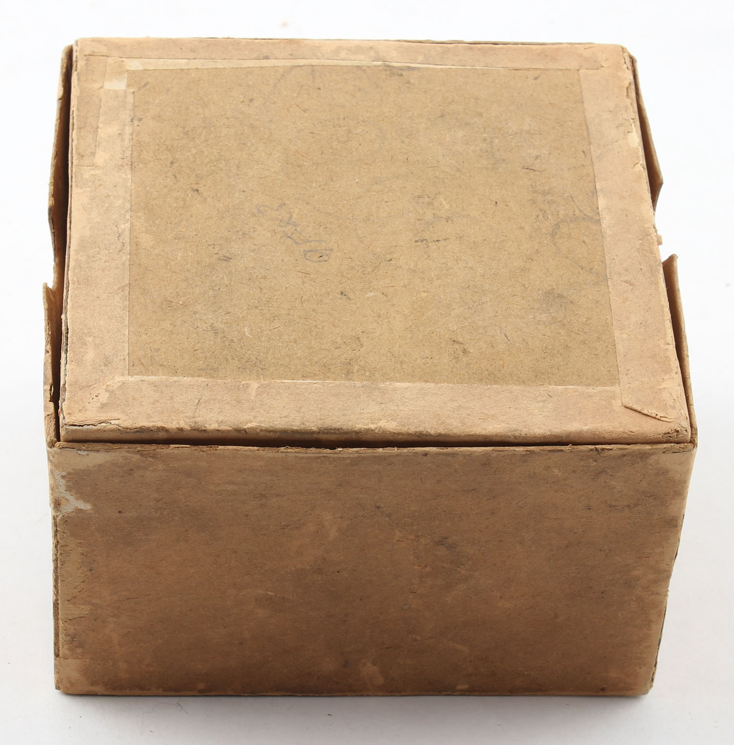 Winchester, RIVAL, BRASS SHOT SHELLS, 12ga., 2 5/8'', Full with 16 shells being correct, buff box with red & black end label, box has age soiling with edge wear, box has seam splits to top & bottom, brass is very good to excellent. Grade: Very Good + - Value: 100 to 300