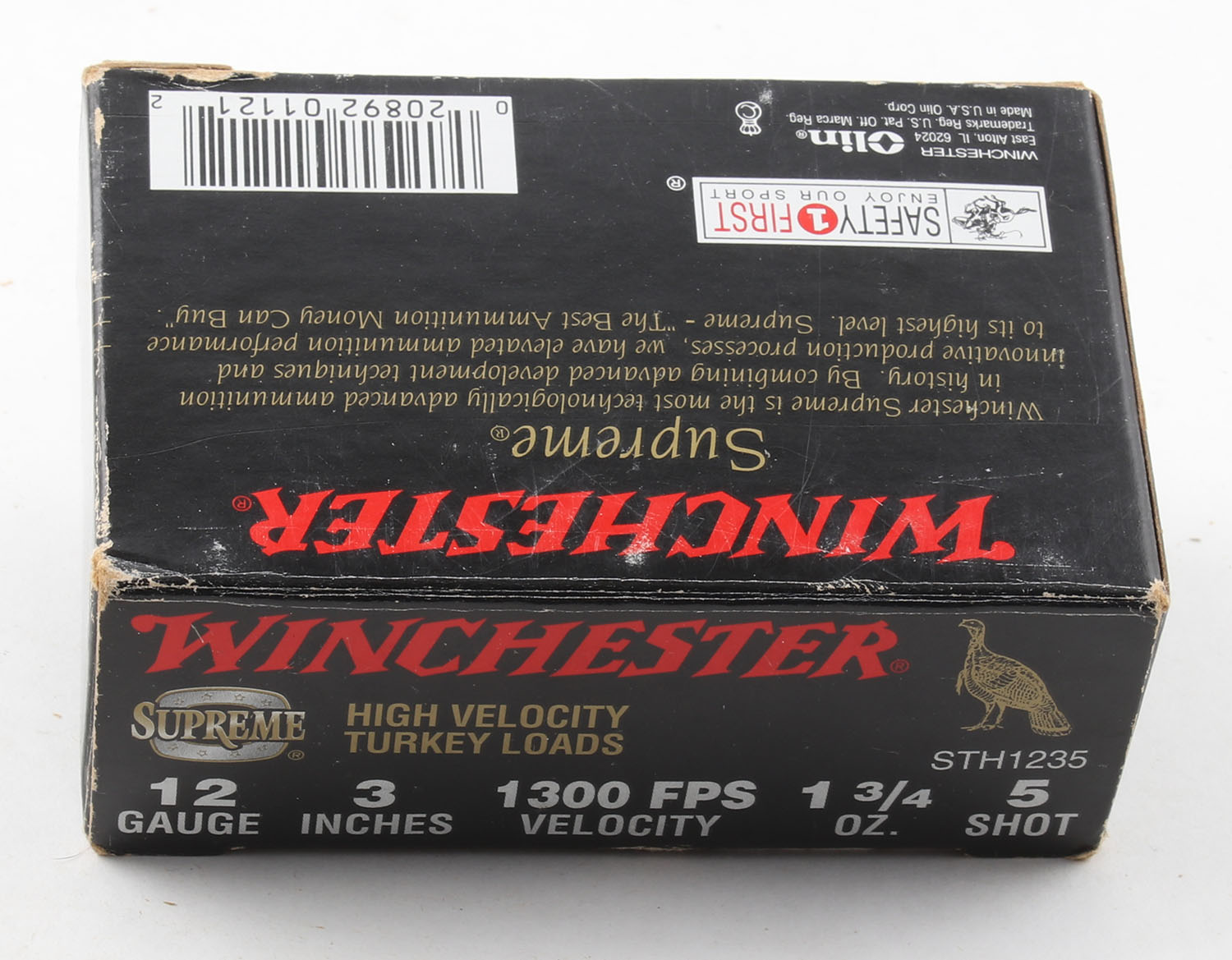 Winchester, Supreme, 12ga., 3'', 1pc., Full, shot size 5, box is very solid, plastic shells are excellent. Grade: Excellent - Value: 10 to 30