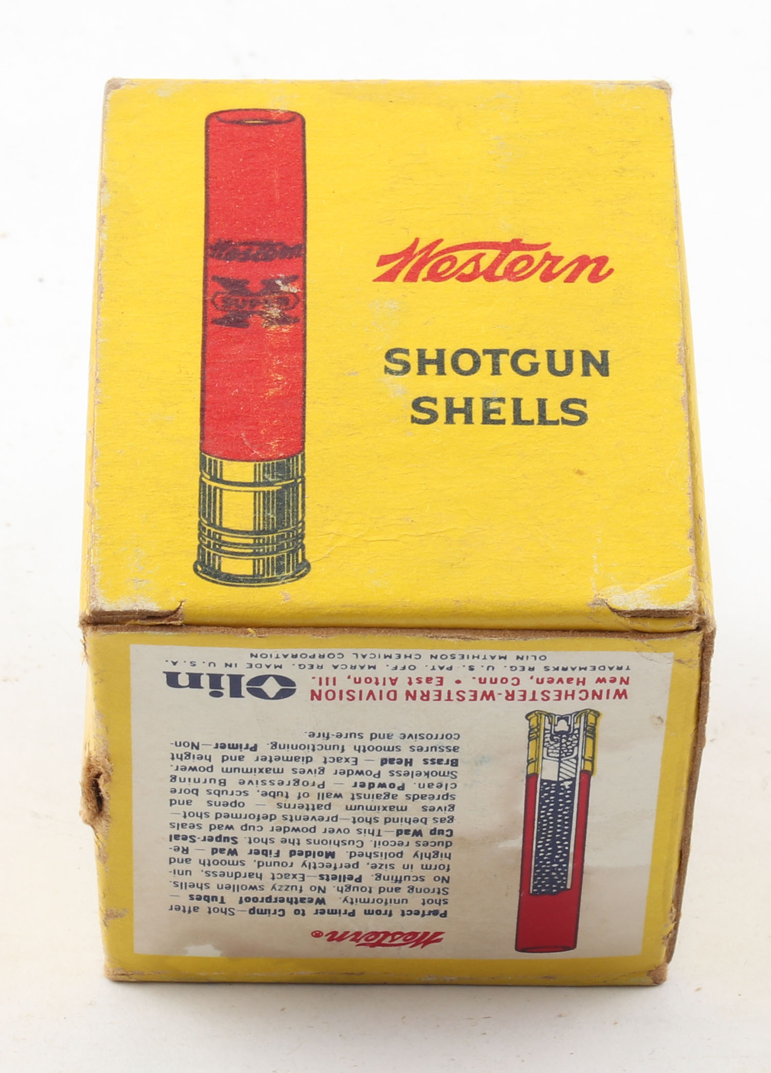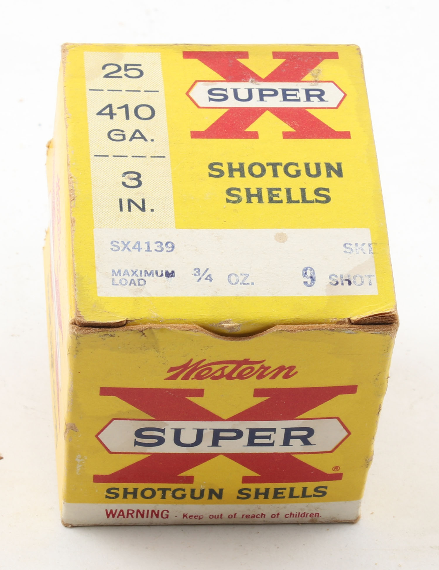 Western, Super X, 410ga., 1pc., Full, shot size 9 Skeet, 3'', multi-colored box, box is solid with edge wear & very nice color, paper shells are excellent. Grade: Very Good ++ - Value: 10 to 40