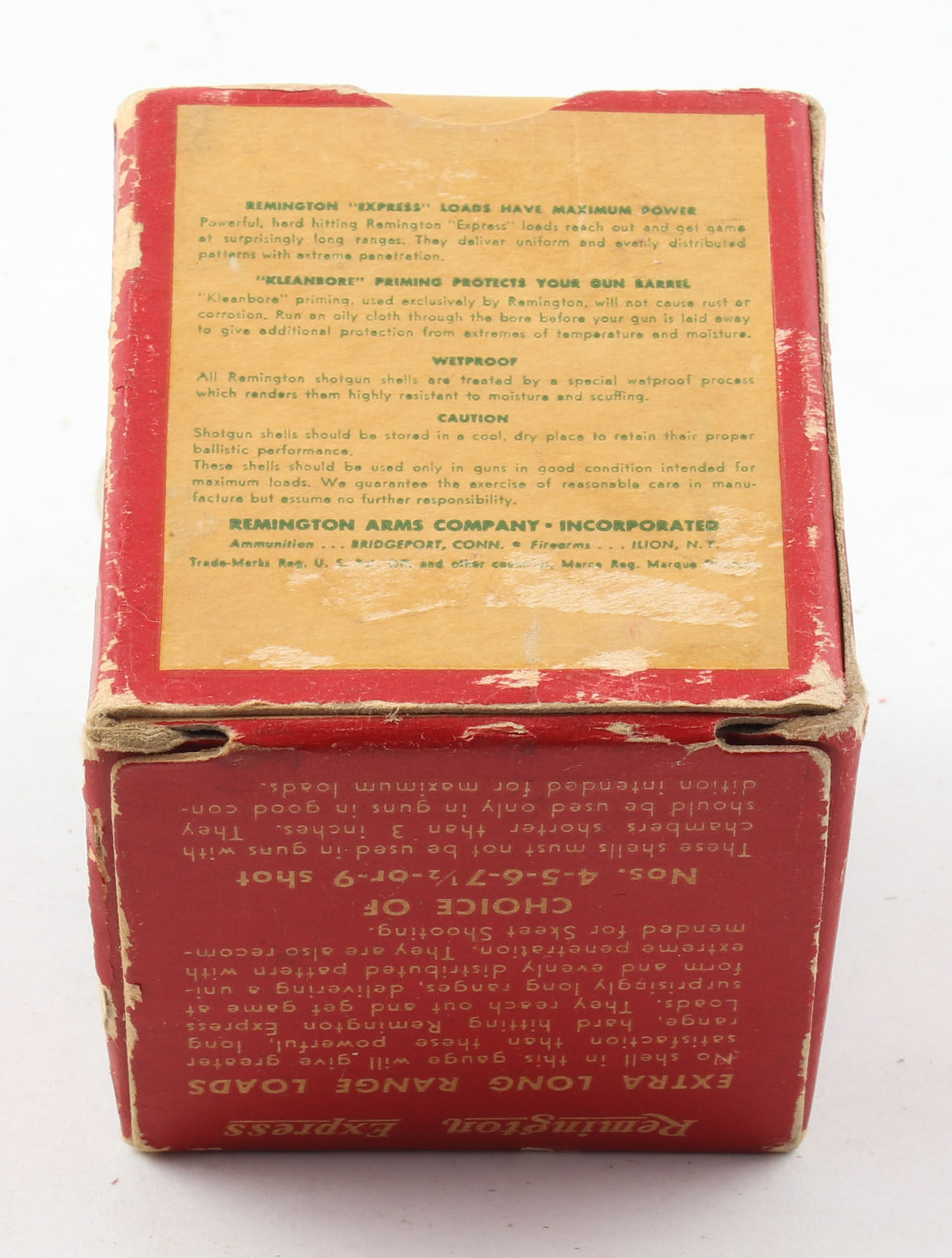 Remington Express, Extra Long Range, 410ga., 3'', 1pc., Full, shot size 6, box is white, yellow, red and green, box has light age soiling with edge wear, paper shells are excellent. Grade: Very Good - Value: 10 to 50