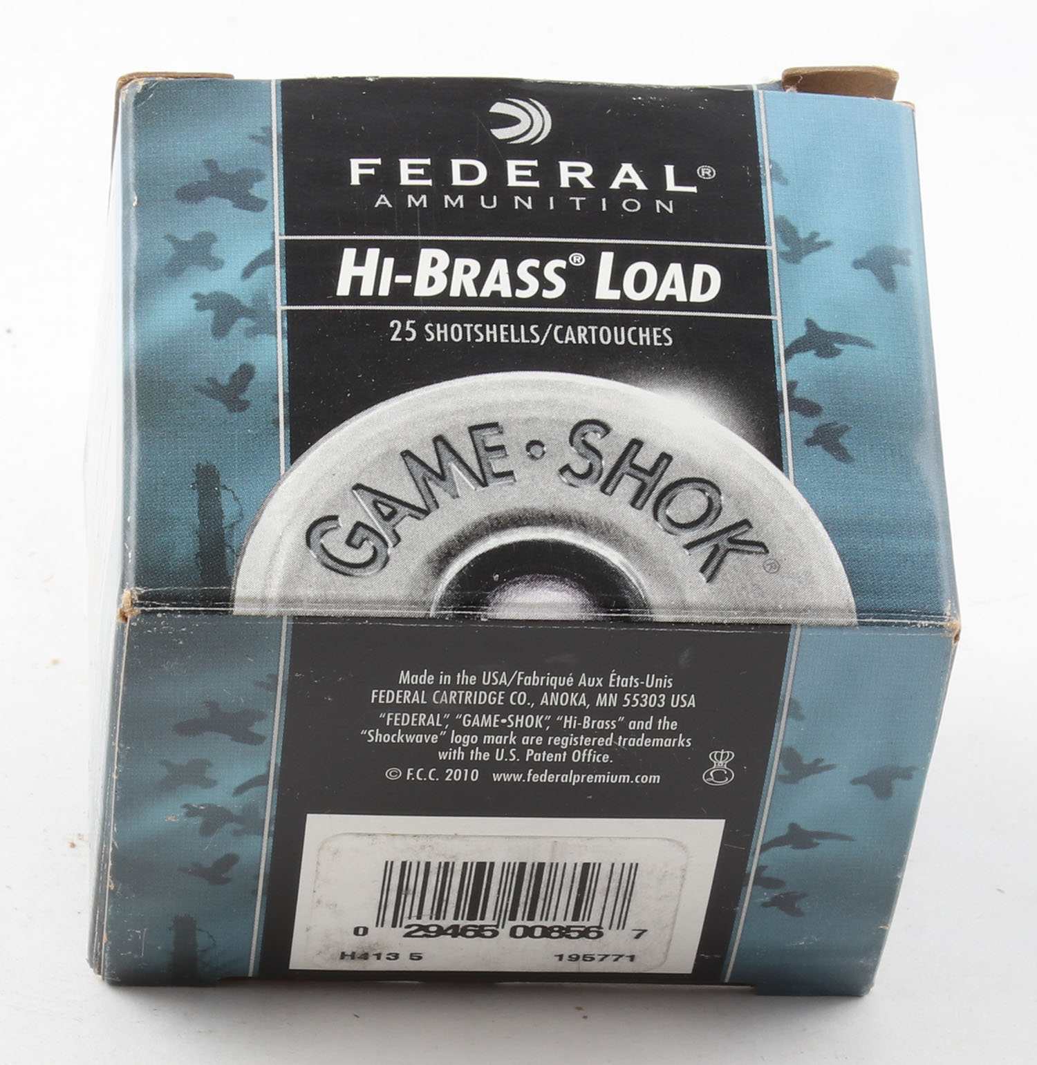 Federal, Game Shok, 410ga., 3'', 1pc., Full, shot size 5 High Brass Lead, multi-colored box, box is solid, shells are excellent. Grade: Excellent - Value: 10 to 40