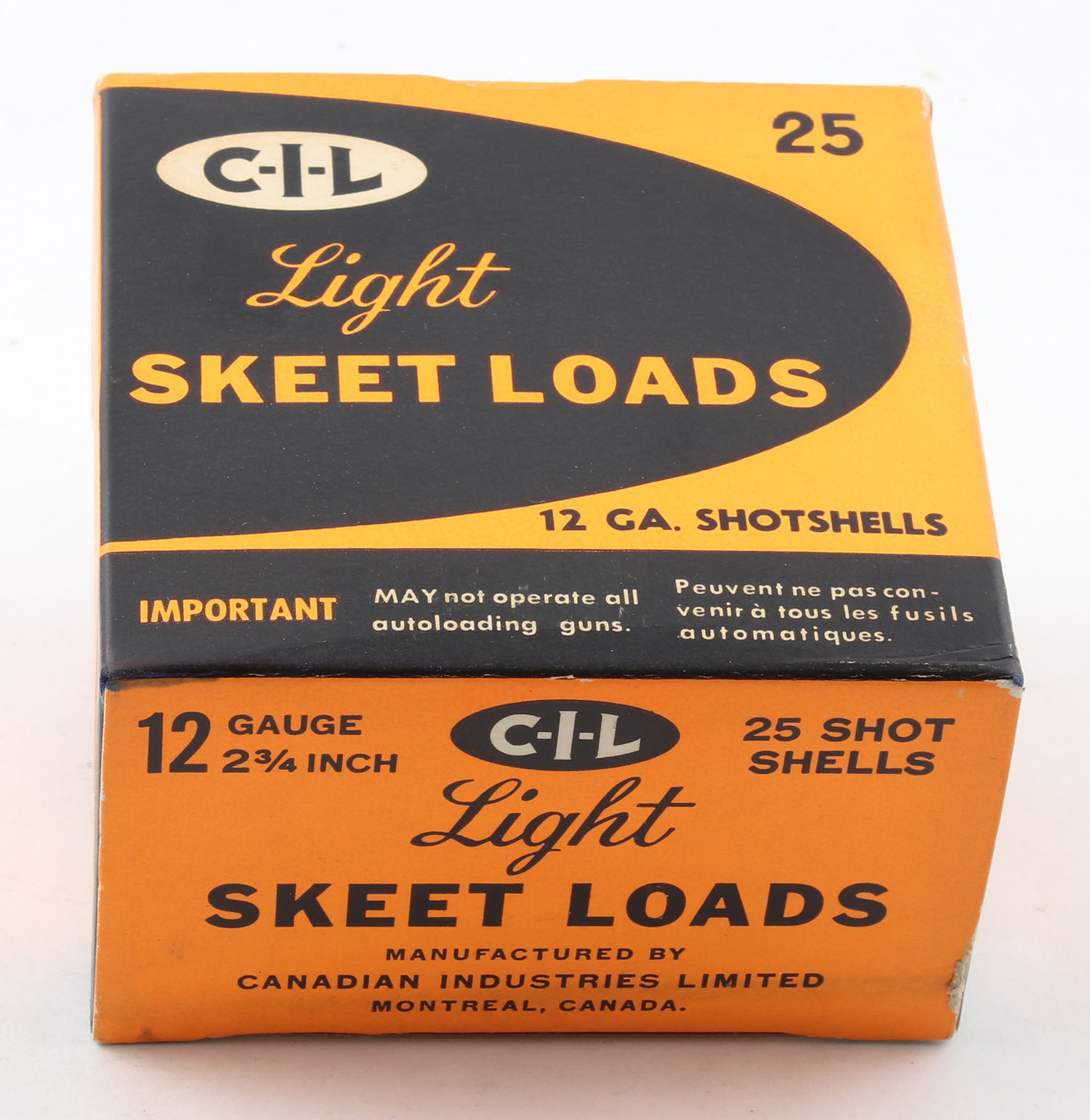 CIL, Light Skeet Loads, 12ga., 1pc., Empty, shot size 9, 2 3/4'', multi-colored box, box is very solid with excellent colors, corners are sharp, edges are crisp. Grade: MINT - Value: 10 to 50