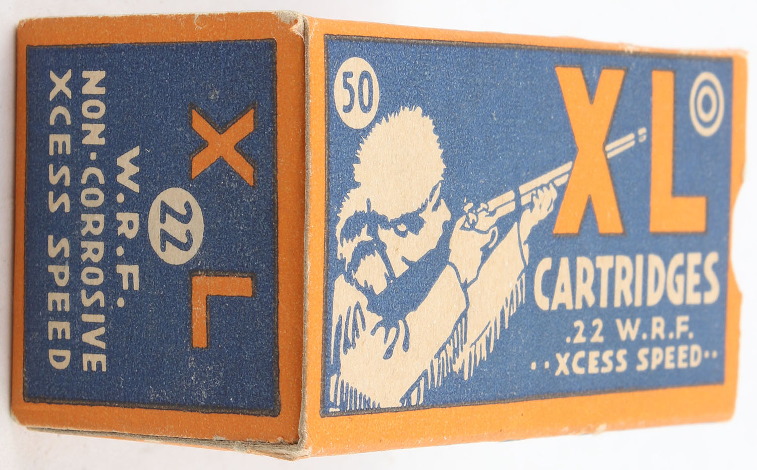 Federal, XL Cartridges, .22 W.R.F., Xcess Speed, RHWeb: FCC-4.1 WRF-1a, Full, 1pc. Blue orange & white box, box is solid with excellent color, very minor corner wear, edges are mostly crisp, end flaps are solid, ammo is excellent. Grade: Excellent + - Value: 150 to 225