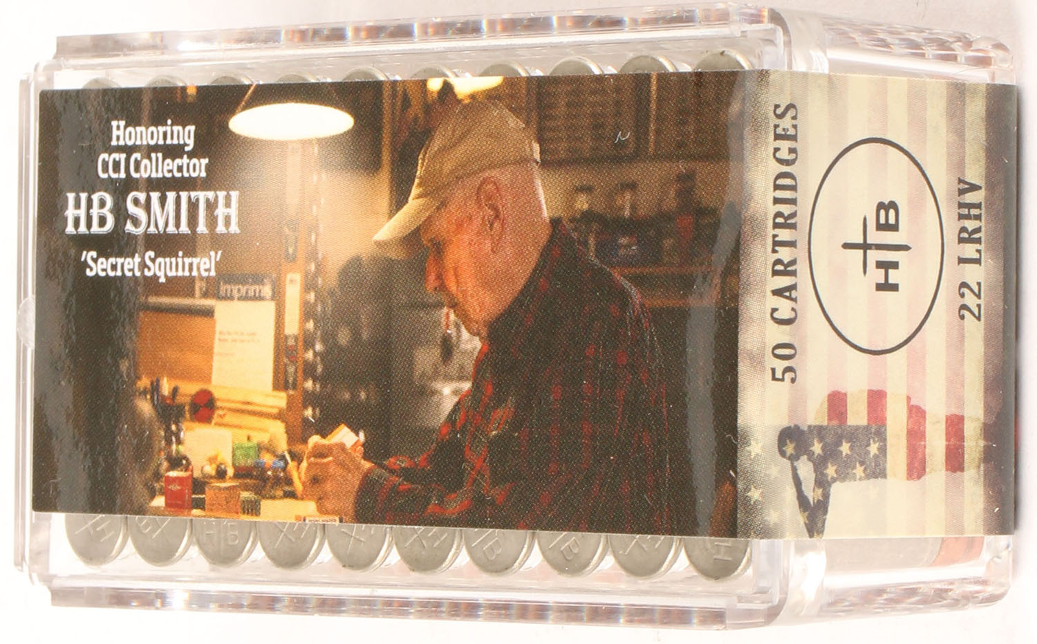 CCi, HB Smith 'Secret Squirrel' Special Edition Honorary Collector box, .22 Long Rifle, High Velocity, FULL & SEALED, 2pc. Clear plastic tray with label featuring long time Ward's customer & consignor, 22 collector, and my good friend; HB Smith, HB has been recognized by CCi for his outstanding collection of CCi special edition boxes over the years and was presented with his very own special edition collectors box, box is MINT, label is intact, ammo appears minty. Grade: MINT - Value: 70 to 100