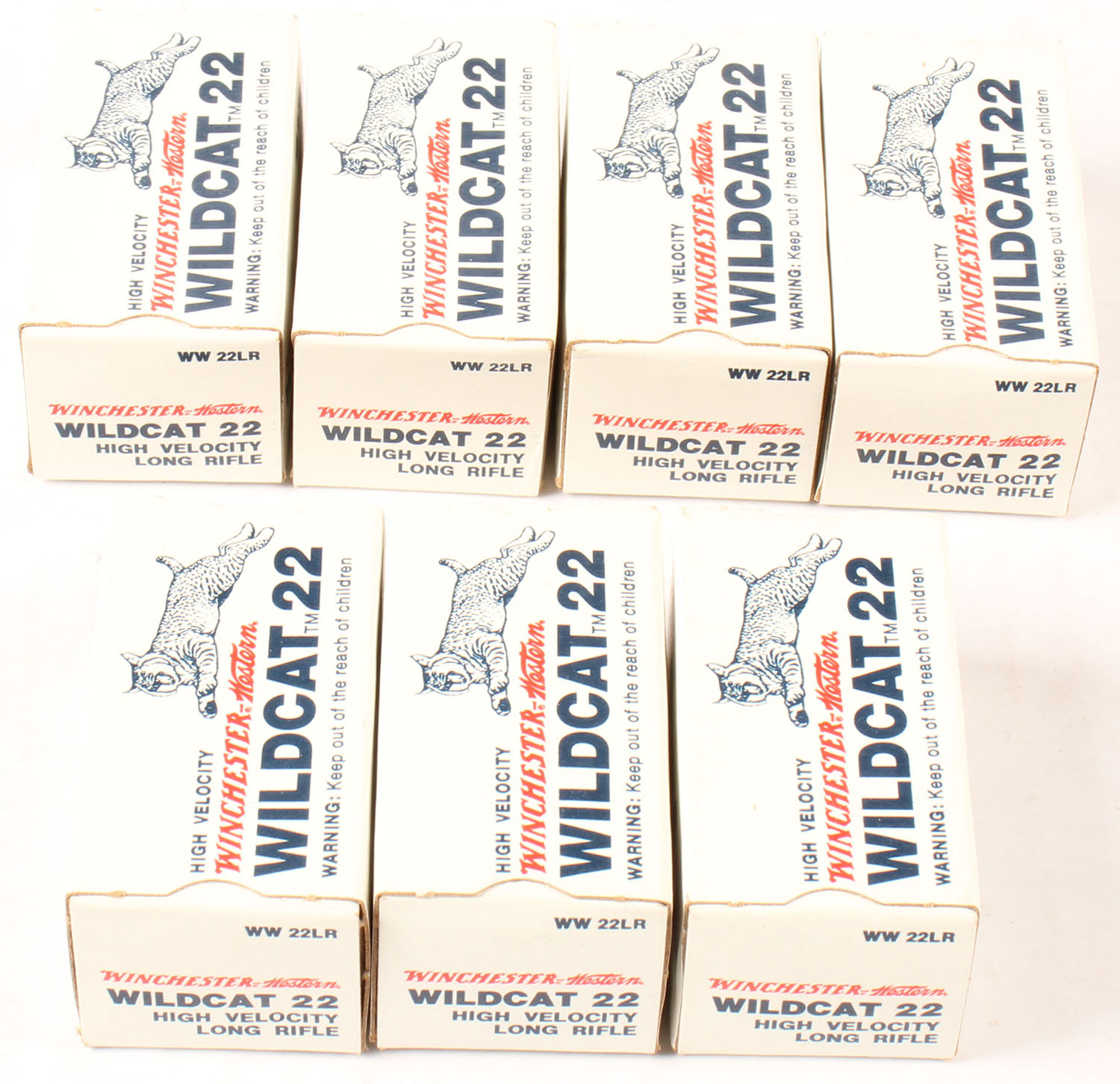 Winchester, lot of (7) boxes, all appear full. Grade: Excellent + - Value: 36 to 54