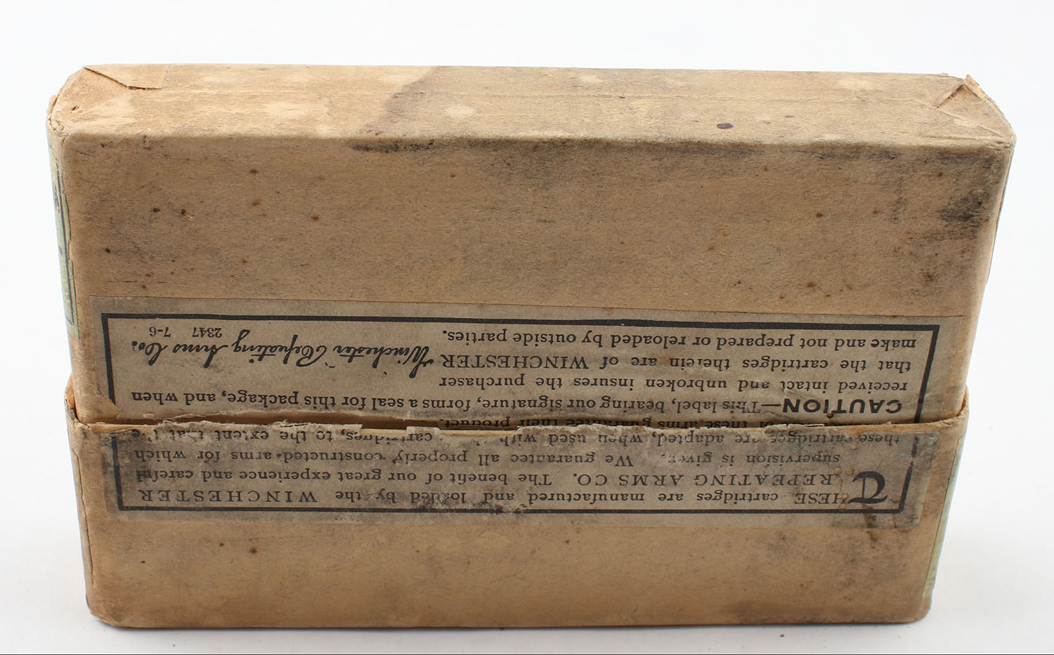 Winchester, Cartridges for Winchester Model 1895, .40-72-330 Winchester, Full, 2pc. Buff box with green label, box is very solid with excellent color, box has shelf wear with some rub marks, labels are intact, ammo is excellent. Grade: Excellent + - Value: 100 to 300