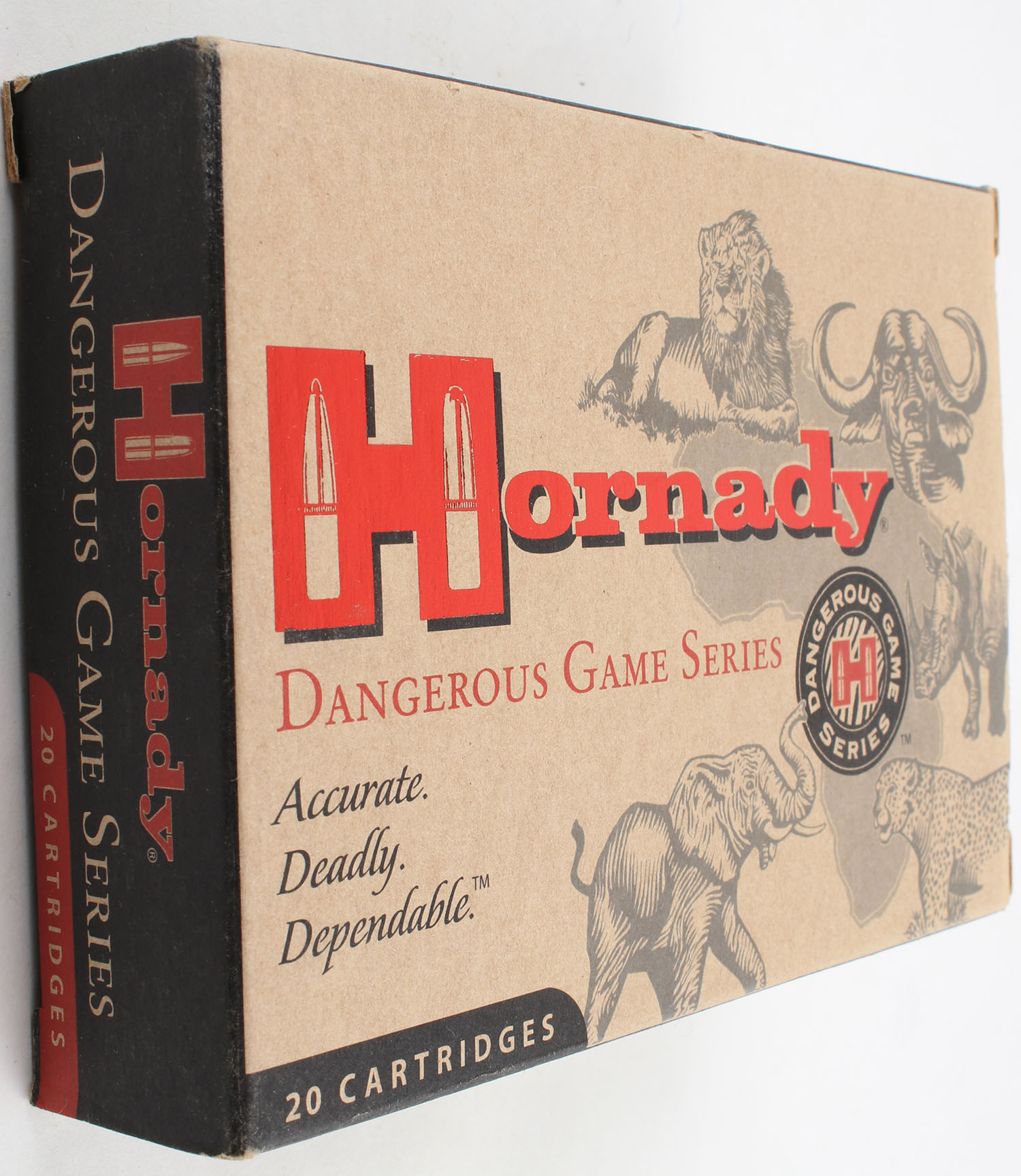 Hornady, Dangerous Game Series, .375 H&H, 300 Grain DGS, Full, 1pc. multi-colored box, box is solid with excellent color, Ammo is minty. Grade: Excellent ++ - Value: 40 to 80