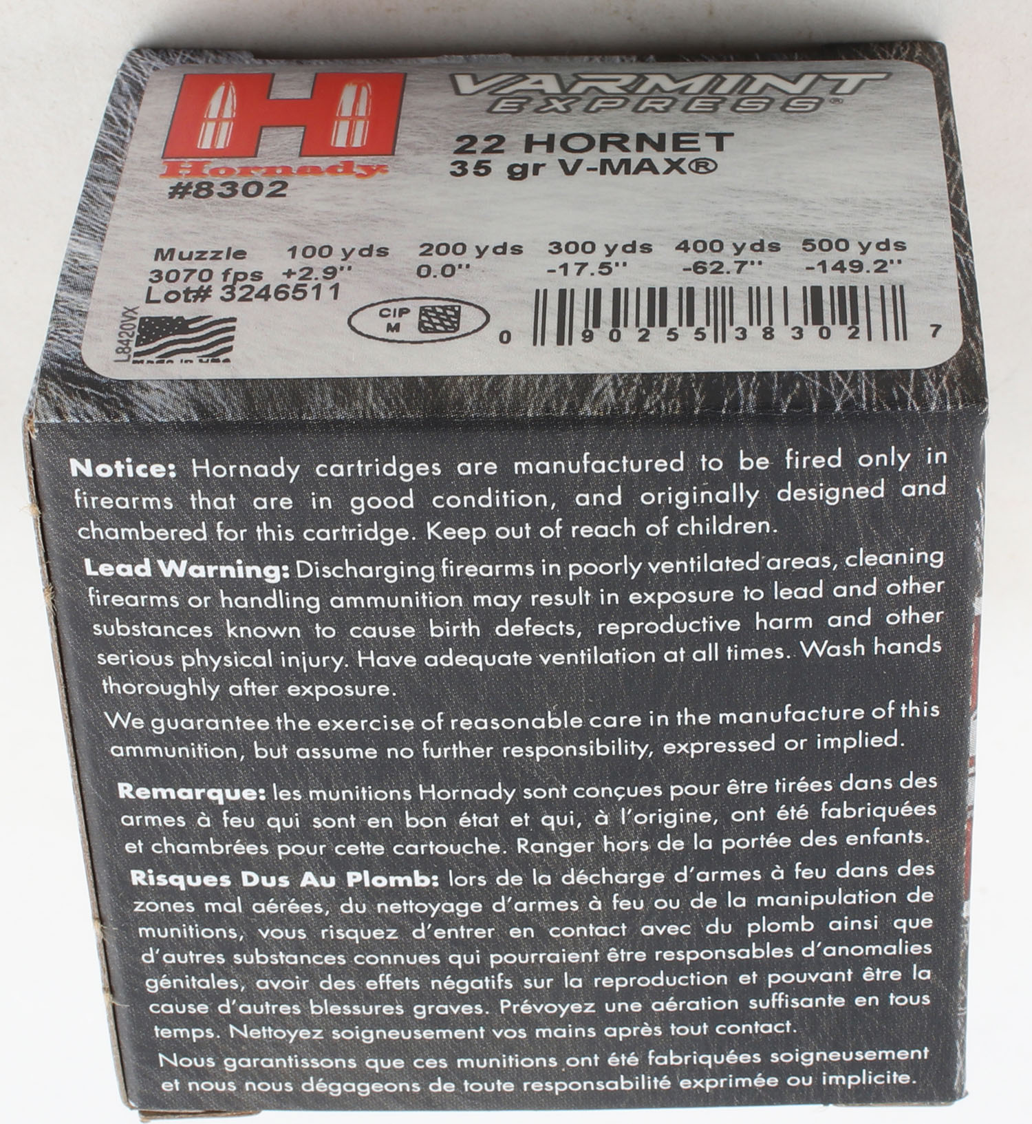 | Hornady, Varmint Express, 22 Hornet, 35 Grain V-Max, Full, 1pc. ...