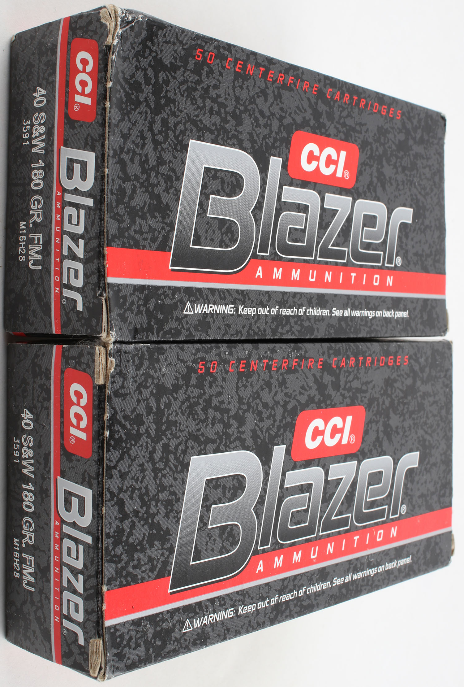 CCI, Lot of (2), Blazer, .40 Smith & Wesson, 180 Grain FMJ, Full, 1pc. Multi-colored boxes, boxes are solid, ammo is excellent. Grade: Excellent - Value: 20 to 60