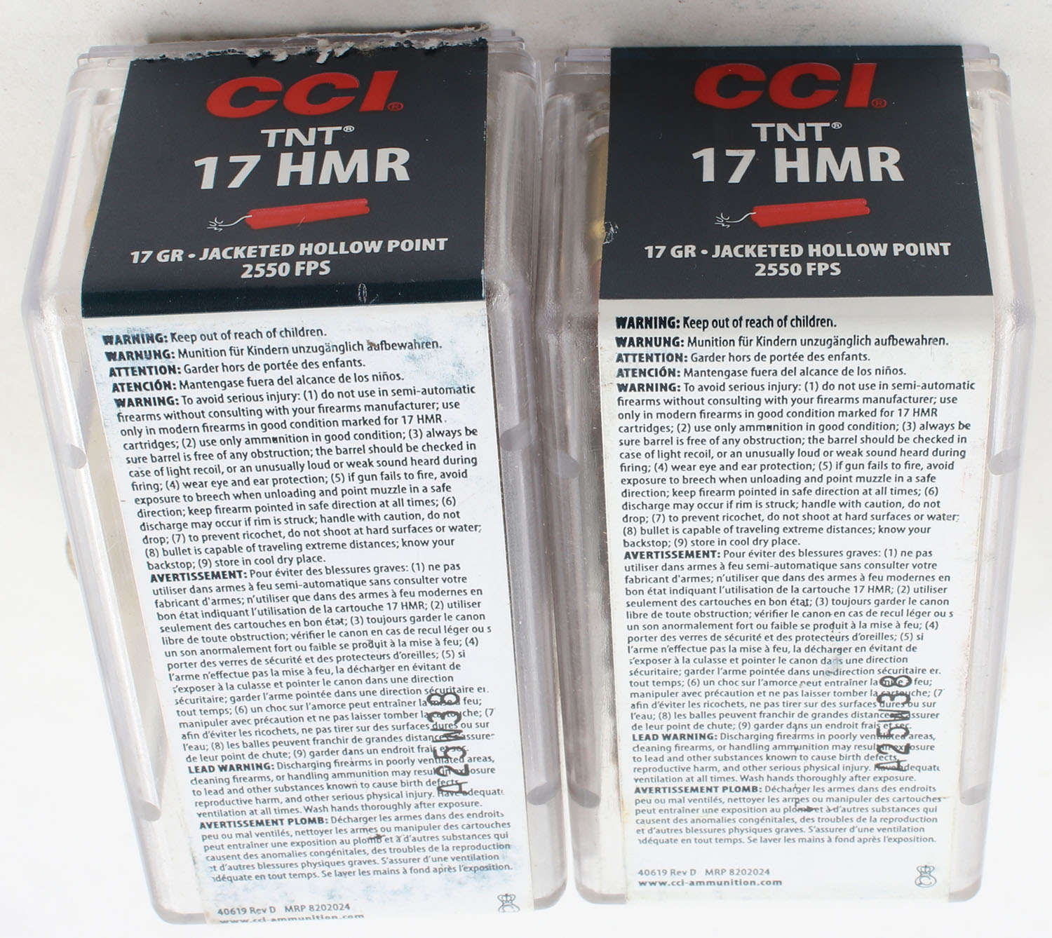 | CCI, Lot of (2), 17 HMR, 17 Grain HP, Full, 50 rds each or 100 t...