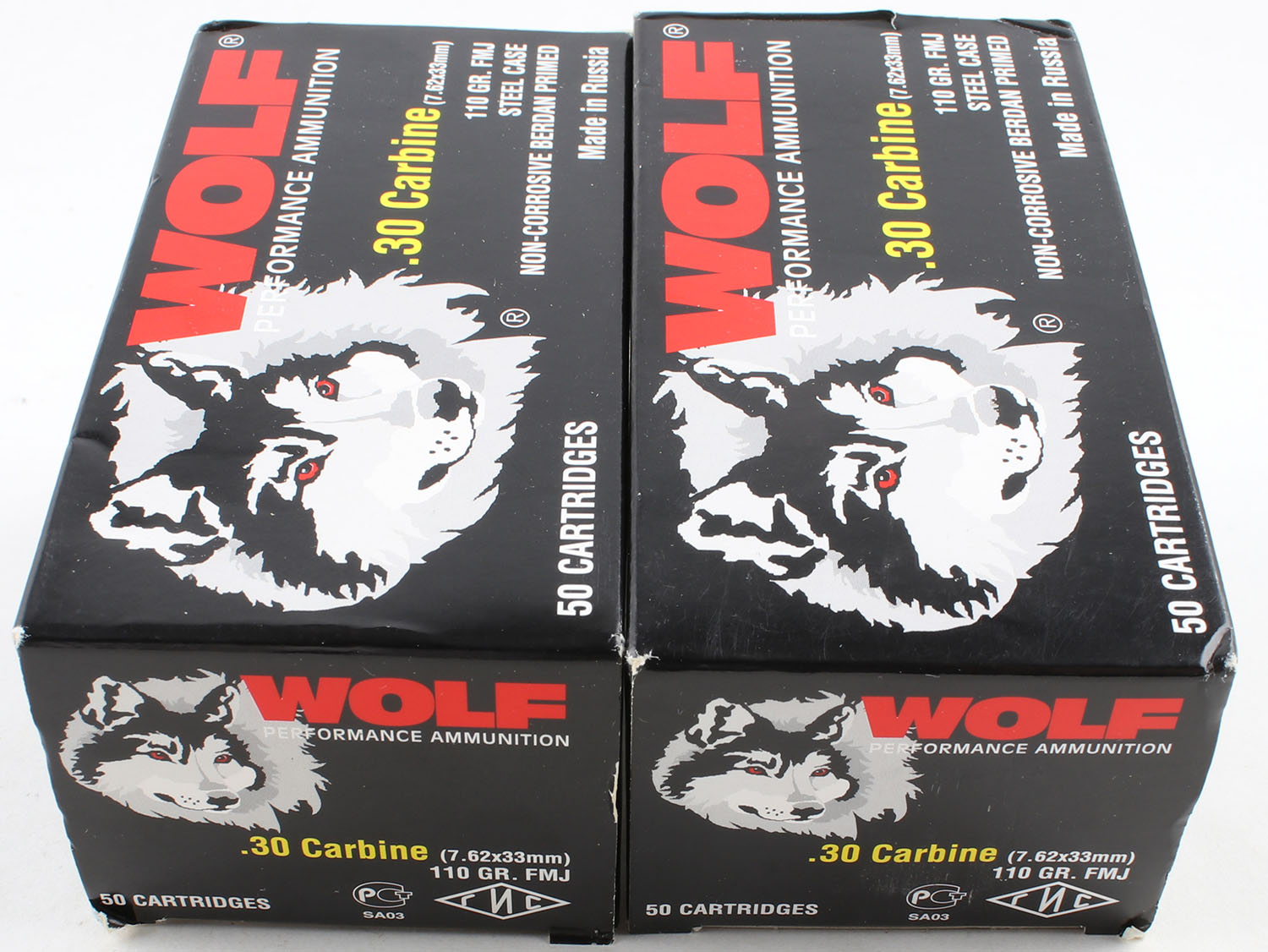 | Wolf, Lot of (2), .30 Carbine, 110 Grain FMJ Steel Case, Full, 1...