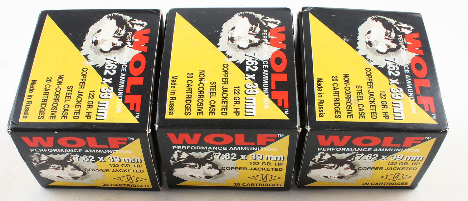 | Wolf, Lot of (3), 7.62x39mm, 122 Grain Copper Jacketed Steel Cas...