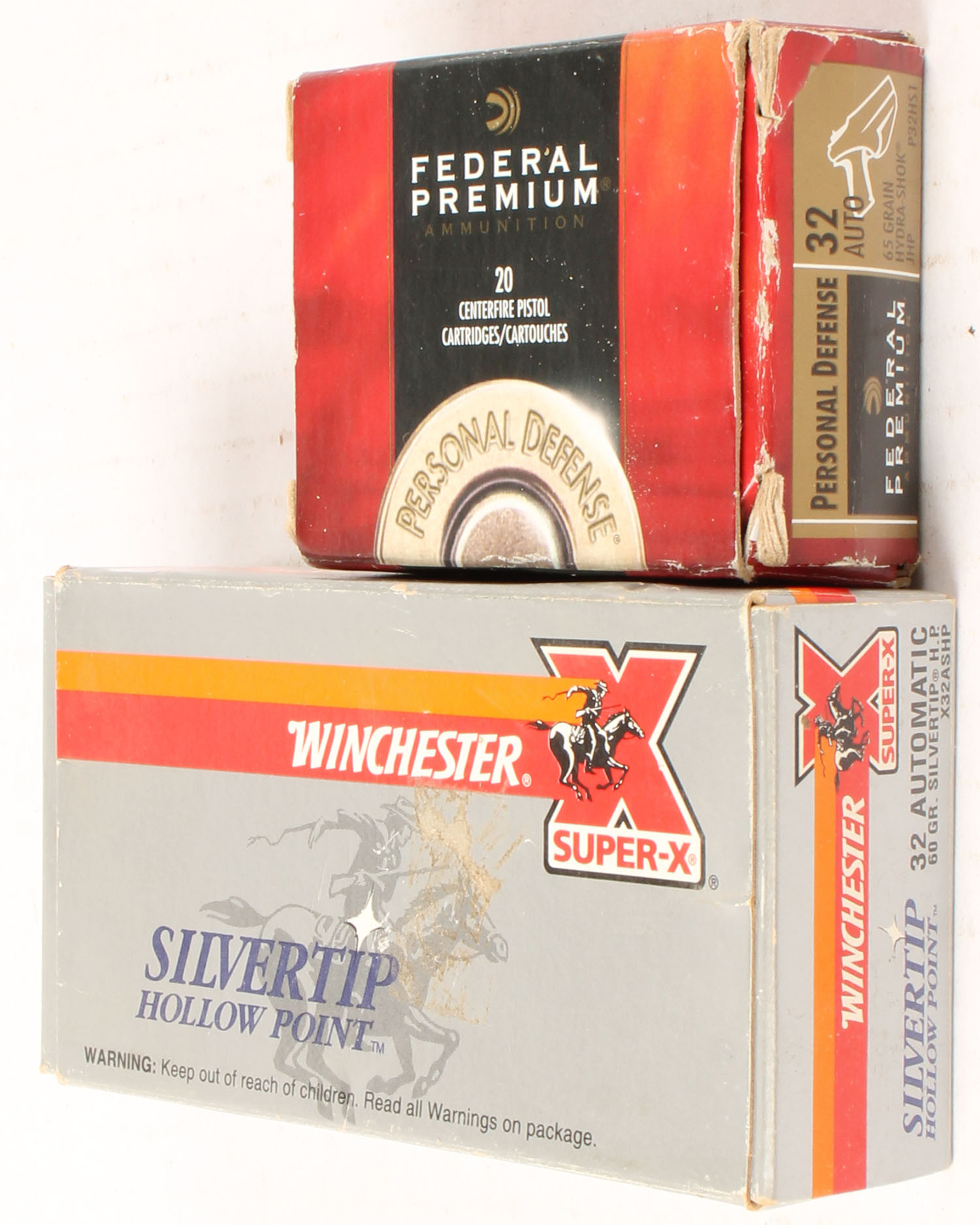 Mixed Mfg., Lot of (2), .32 Auto., Winchester box is Partial 22rds., Federal box is Full, 1pc. Boxes are solid, ammo is excellent. Grade: Very Good ++ - Value: 10 to 30