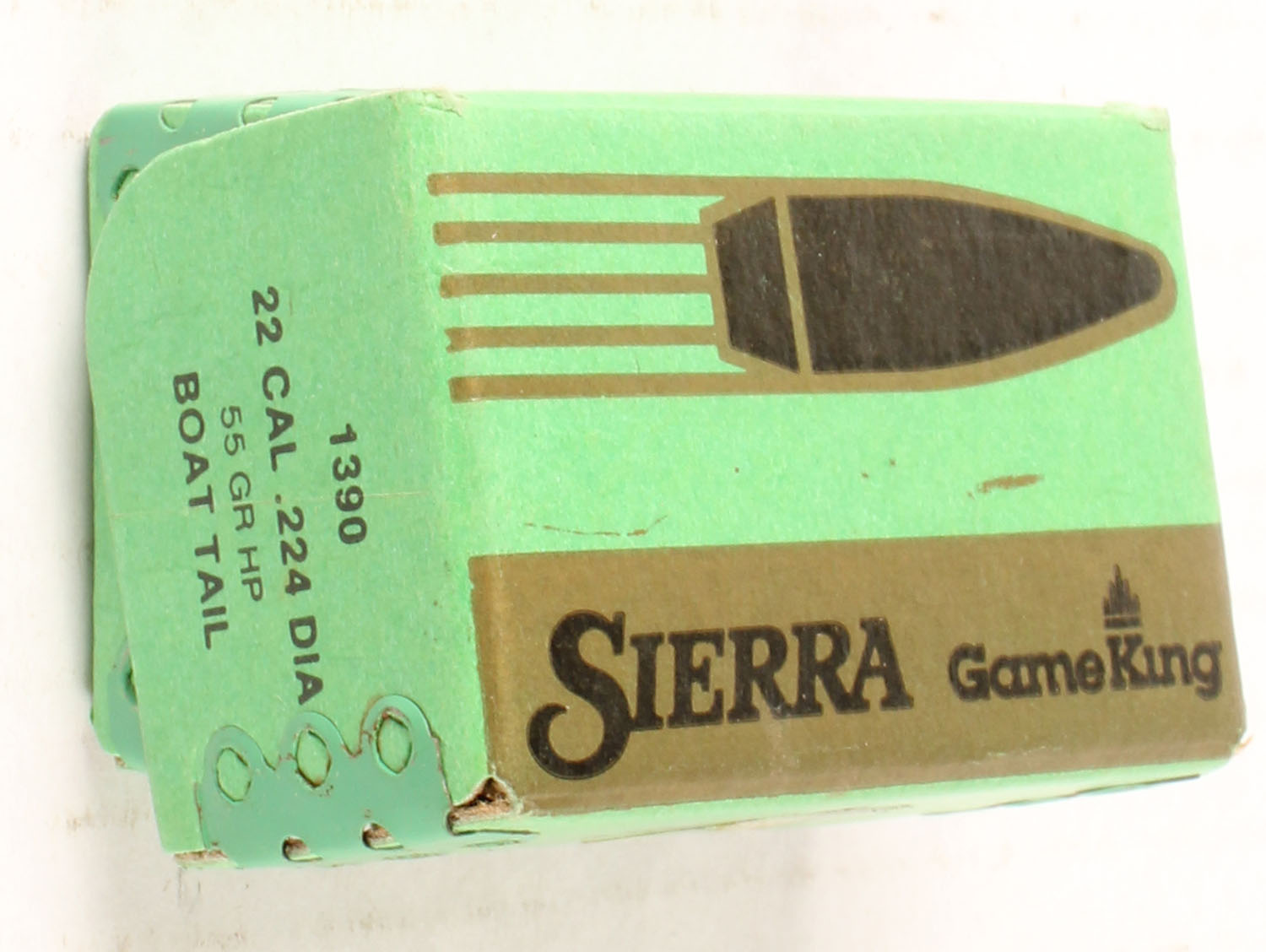 Sierra, .22 Cal., 55 Grain HP Boat Tail, .224 Dia., Full with Insert, 1pc, green box is very solid, bullets are excellent. Grade: Excellent - Value: 10 to 40