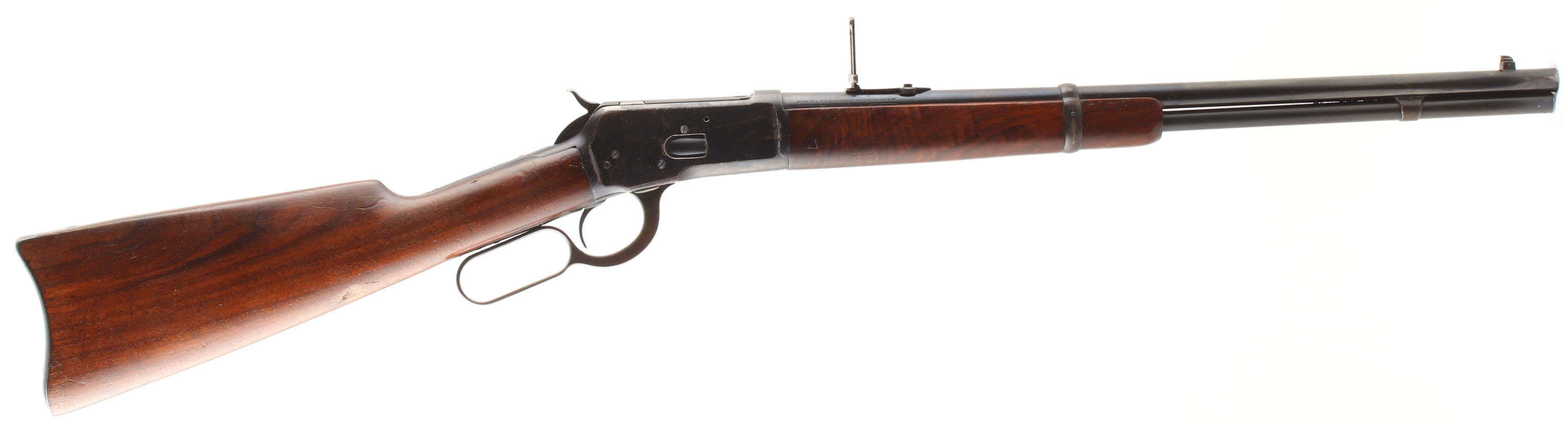 Winchester Model 92 SRC, CAL: 25-20 WCF, MFG: 1926, SN: 968247, Lever Action Rifle, 20'' round barrel, Full mag. The original straight grip wood stocks are excellent, with a number of minor to small contusions & light scratches to the excellent original finish. There is one dime sized contusion to the belly of the stock. The original metal blue finish rates 85% on the barrel & mag tube, 75% bright blue remaining on the receiver, with loss on receiver due to ''Winchester flaking'' loss on sides toning to a brown patina. Bore is excellent. Barrel fitted with the correct carbine adjustable flip-up ladder rear & standard carbine box front sights. Smooth metal carbine buttplate. Smooth tight action. A very sharp looking & original SRC 92. FFL or C&R Req. - Value: 2000 to 2750