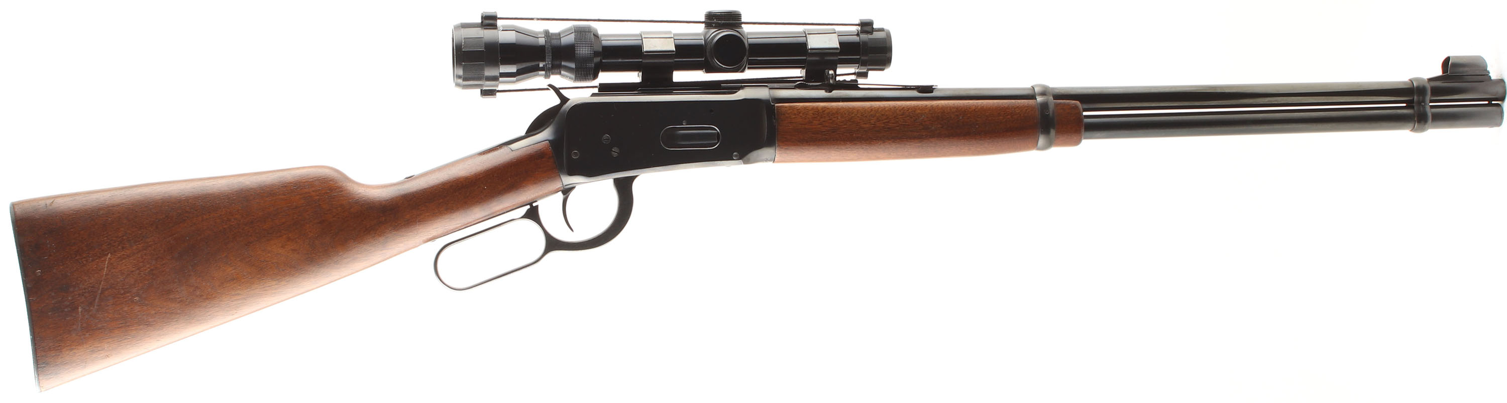 Winchester, Model 94 Carbine, CAL: 30-30 (30 WCF), MFG: 1956, SN: 2213432, Lever Action Carbine, 20'' Round barrel, Full mag. The straight grip wood stocks are excellent & solid, with a few minor handling marks to the excellent original finish. There is a longer surface scratch to the right side of the stock. The original metal blue finish rates 90% overall. Bore is excellent. The receiver is fitted with a side mounted Tasco 1.75-5X20 scope on Weaver mounts, while the barrel is fitted with an adjustable rear sight & a ramped hooded blade front sight. The left side of the receiver carries the two hole factory provision for receiver side mounted sights, which became standard after 1952. Stock carries a checkered metal shotgun style buttplate. Smooth tight action. A solid & high original condition 30-30 carbine setup ready for the hunt. FFL or C&R Req. - Value: 600 to 1200
