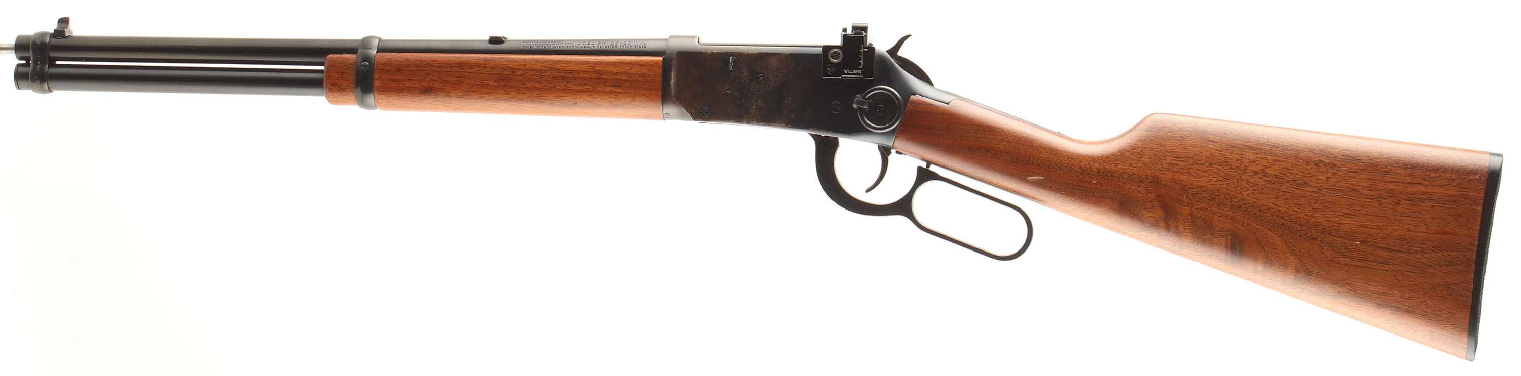 Winchester Model 94 TRAPPER SRC, CAL: 30-30 WIN, MFG: 1981, SN: 4940510, Lever Action Carbine, 16'' Round barrel, Full mag. The original straight grip wood stocks are excellent, with a few handling marks & light scrapes or contusions to the excellent original finish. The original metal blue finishes are 99% on the barrel & mag, 60% on the receiver due to spotty loss toning to a brown patina. Bore is excellent & bright. The receiver is fitted with a Williams side mounted receiver sight, While the barrel holds a blank filled rear dovetail & blade front sight. Buttstock carries a Winchester checkered plastic buttplate. Saddle ring. A very nice modern trapper SRC in the popular to shoot 30-30 caliber. FFL Req. - Value: 600 to 1000
