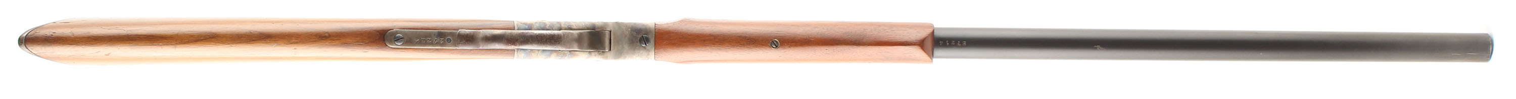 J. Stevens A. & T. Co., Model No. 44, Cal: 32-40, MFG: 1894 - 1933, SN: 27214, Single Shot Rolling Block, 26'' Octagon to round barrel. The original straight grip wood stocks are excellent, with minor scratches or handling marks to the excellent orginal finish. The top of barrel is stamped ''J. STEVENS ARMS. & TOOL. CO. CHICOPEE FALLS.MASS. U.S.A. PAT. APR.17 94.'', while the left side is stamped ''32.40''. The SN is stamped on both the lower tang & the barrel. The original metal blue finish to the barrel rates 95%. The case-colored receiver displays fantastic case-colors. The barrel carries an adjustable rear & Rocky Mountain front sights. Bore is excellent. Stock carries a crescent metal buttplate. An overall excellent & original collector's grade Stevens 44 rifle. FFL or C&R Req. - Value: 600 to 1000