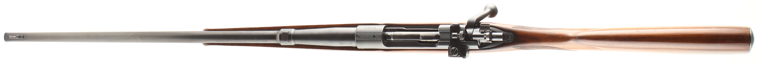 Winchester Model 54, CAL: .30-30., MFG: 1929, SN: 26860A, Bolt Action Rifle, 24'' barrel. The model 54 was the first successful civilian bolt action for Winchester. They are a fairly rare model with total production of just over 50,000 in all variations from 1925 to 36. The original checkered & flat pistol grip wood stock on this example is excellent, with several minor contusions, scrapes & scratches to the original finish, which is thinning at the carry point around the floorplate. The original metal blue finishes rate 90% overall. The floorplate & trigger guard display greater wear to about 40% coverage. Bore rates excellent. The rifle is fitted with the fully adjustable Redfield receiver sight, while the barrel has a blank filled rear dovetail & standard pinned blade front sight. Buttstock carries the original serrated metal buttplate. Sling eyelets. An overall excellent & original early Winchester bolt action. FFL or C&R Req - Value: 800 to 1200