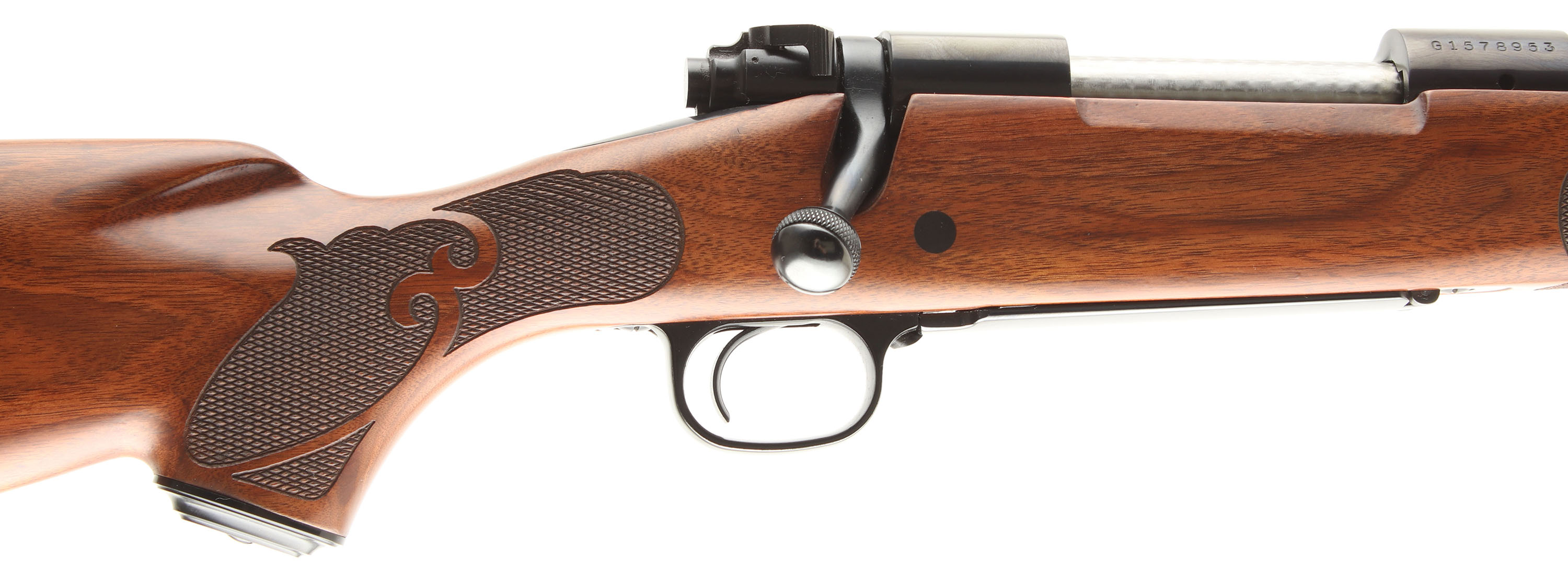 Winchester, Model 70 XTR Featherweight, CAL: Marked 7MM MAUSER, MFG. 1982, SN: G1578953, 22'' Round tapered barrel. The factory checkered & capped pistol grip wood stock is excellent, with virtually no handling marks to the excellent factory finish. Excellent rippled grain. The original metal blue finishes rate 98% overall, with the blue on the receiver starting to tone a bit plum as it ages. Bore is excellent & bright. The receiver has four open hole from previous scope mounting, while the barrel has no provisions for open sights. The stock carries the original Winchester solid rubber recoil pad. Sling studs. Jeweled bolt with matching SN. An excellent model 70 XTR Featherweight. FFL Req. - Value: 800 to 1000