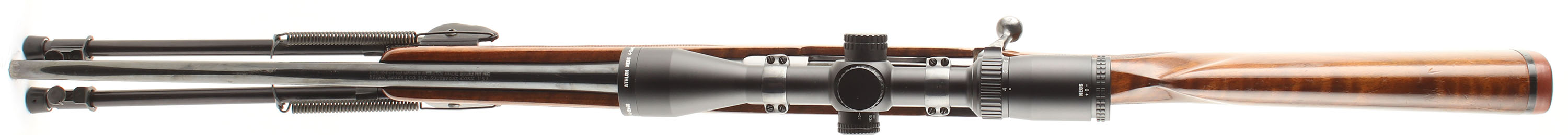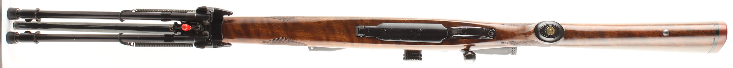 Ruger, Model M77, CAL: marked 270 WIN, MFG. 1981, SN: 75-85319, 22'' Round tapered barrel. The factory checkered & capped pistol grip wood stock is excellent, with several light scratches, minor contusions & rubs to the original finish, which is thinning from use, particularly around the pistol grip & forend. The pistol grip cap has an inlaid 270 cartridge case head. The original metal blue finish rates 80% on barrel, 90% on the receiver, toned plum, While the floorplate & trigger guard show additional wear & scratches. Bore is excellent. The receiver carries an Athlon 4-12x40 scope , while the barrel has no open sight provisions. Stock carries a Ruger solid rubber recoil pad & a forend mounted folding & adjusting bi-pod. Sling studs. Previous owner used this as a target & bench hunting rifle. FFL Req. - Value: 500 to 800
