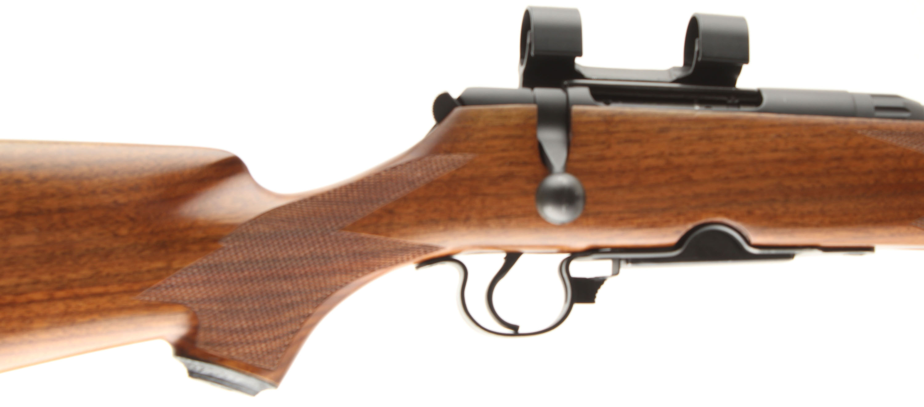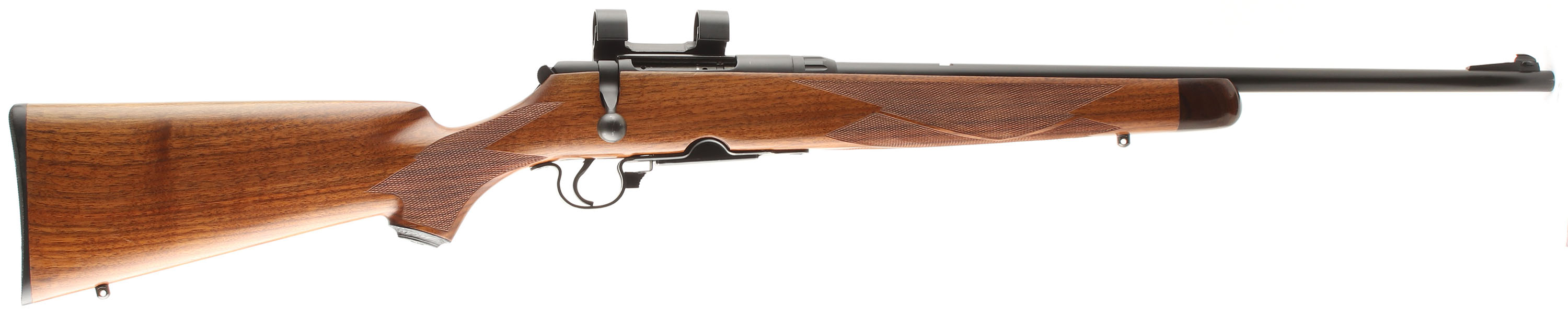 Savage, Model 340, CAL: 30-30, MFG: 1950-68, SN: None, Bolt Action Rifle, 22'' Round barrel. The updated Bishop cheeked, checkered & capped pistol grip wood stock is excellent, with rosewood forend cap. There are virtually no handling marks to the excellent finish & excellent sharp checkering. The metal blue refinish rates 99% overall, trigger guard & mag show additional wear. Bore is excellent & bright. The receiver carries a Weaver 1'' side mount scope base & ring set ready for a scope, while the has an open rear dovetail & ramped Marbles Sheard blade front sight, The buttstock carries a Bishop checkered plastic buttplate. Sling studs Original detachable mag. Sling loops. FFL or C&R Req. - Value: 250 to 450