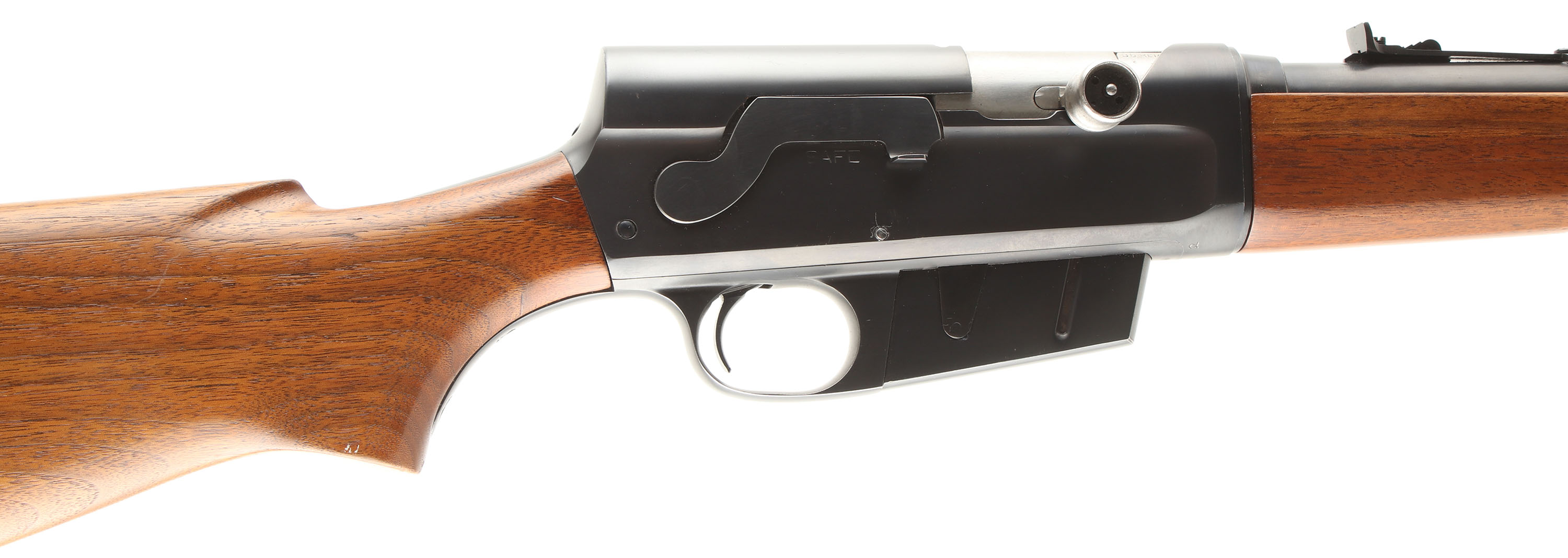 Remington, Model 81, 35 REM CAL, MFG. 1949, SN: 47766, Semi-Auto Rifle, 22'' barrel. The original flat pistol grip wood stocks are excellent, with very few tiny to minor handling marks to the excellent original finish. While the finish does appear original, the metal is slightly proud to the metal along the edges of the lower tang. The original metal blue finish rates 98% overall. The barrel carries the standard front & rear sights. Bore is excellent, clean & bright. Stock carries the original Remington checkered metal buttplate. 4 rd fixed magazine. Sling studs in stock & forend. An overall excellent & original collectors condition 81 rifle. FFL or C&R Req. - Value: 1000 to 1500