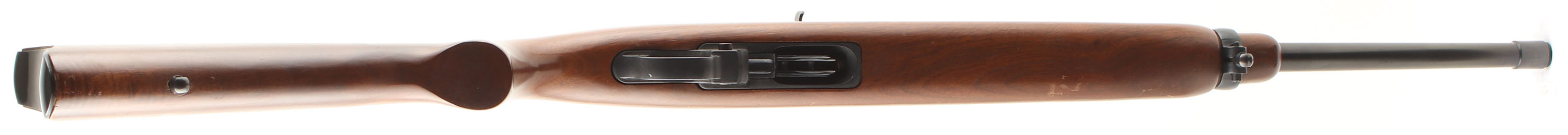 Ruger, Model 44 Carbine, CAL: 44 MAG, MFG: 1964. SN: 90152, Semi Auto Rifle, 18 1/4'' Barrel. The factory wood stock is in very good, near excellent, condition. The stock is solid with light handling wear & some, scratches, and dings. The blued finish on the barrel and frame rates 97% with some splotches of patina and exposed gun metal grey. Bore is excellent, bright with strong rifling. Mechanically solid, seems to function well. The top of the frame holds a windage & elevation adjustable rear peep sight. A fixed front sight with a white plastic insert is set in a dovetail cut on the end of the barrel near the muzzle. FFL or C&R Req. - Value: 700 to 1400