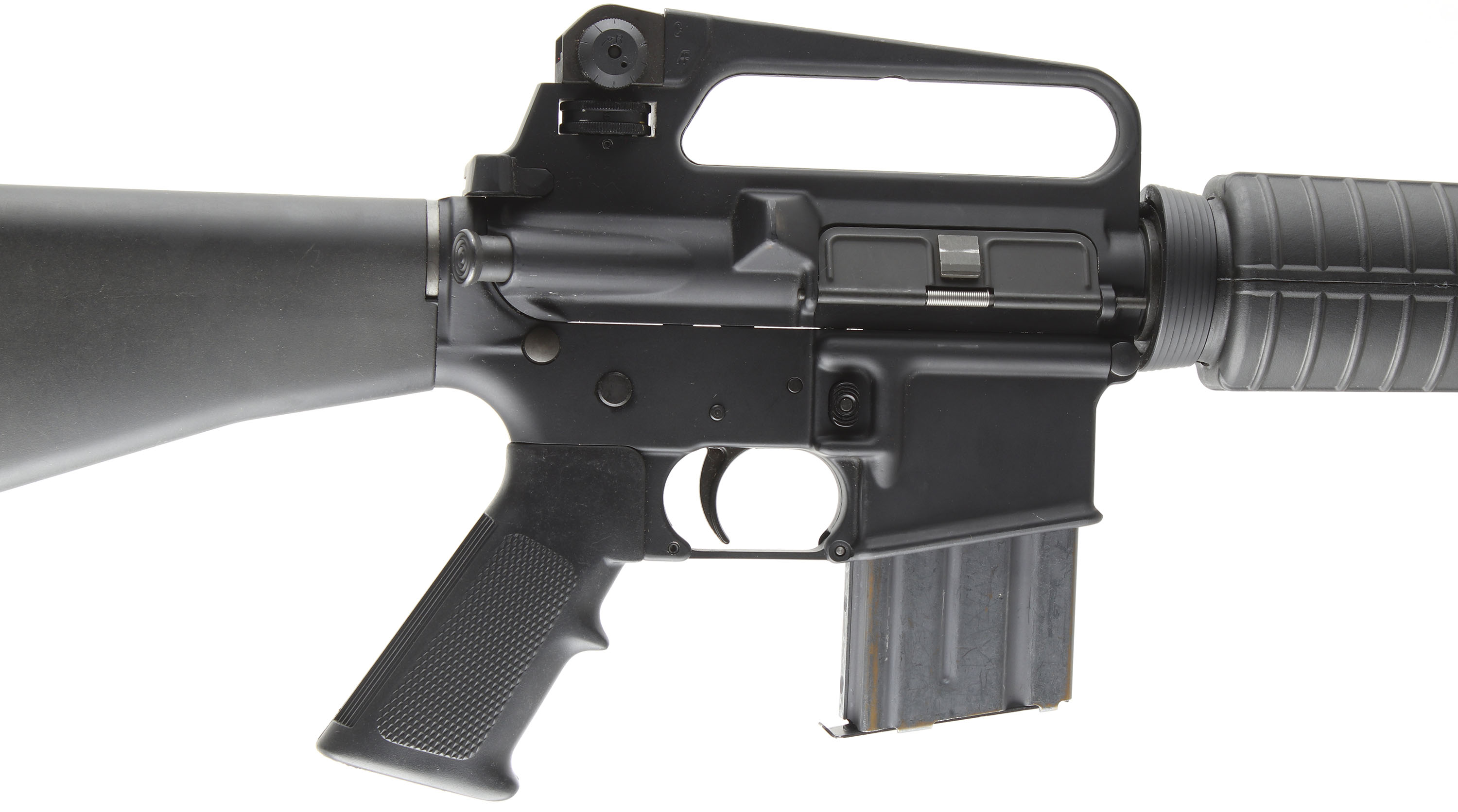 Colt, Match Target HBAR (AR-15), CAL: 223 Rem, MFG: Modern. SN: CMH026379, Semi Auto Rifle, 20'' Barrel. The factory plastic A2 style furniture is excellent with light wear from use. The anodized finish on the gun is very good, near excellent, with some wear including small dings & surface scratches concentrated on the left side of the gun. Bore is excellent, bright with strong rifling. Mechanically solid, seems to function well. The gun has an elevation adjustable front sight that is integral to the gas block. The carry handle upper receiver has a windage & elevation adjustable rear sight. Comes with a 20 round magazine. FFL Req. - Value: 500 to 1000
