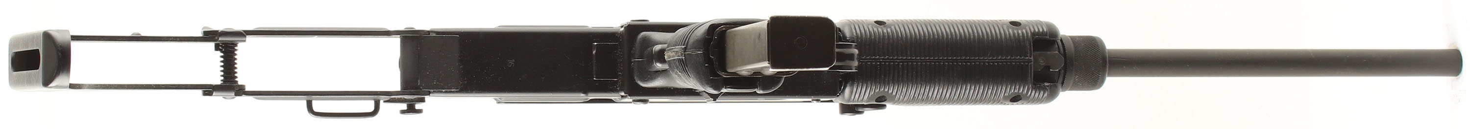 IMI- Israel (Action Arms Import), Model: Uzi Semi-auto Model B, Cal: 9x19mm, MFG: 1983-89, S/N: SA49207, Semi-auto rifle, 16 1/8'' barrel. The grooved black polymer pistol grip & foregrip are excellent with a couple minor scuffs & light handling wear. Metal folding buttstock. The parkerized finish on the barrel rates 92% with light rust speckling. The black paint finish on the rest of the metal rates 98% with a few light scratches. The left side of the receiver is marked ''UZI semi auto'', ''MODEL B'', ''9mmPARA'', ''IMI-ISRAEL''. The right rear side of the receiver is marked ''ACTION ARMS,LTD'', ''Phila.Pa.'', & the S/N. the right end of the barrel is marked with a ''P'' in circle, & the last three digits of the S/N ''207''. The bore is very good. Its bright & mirror like with a couple spots of light pitting. The receiver holds a elevation adjustable post front sight with protective ears, & a windage-adjustable, aperture flip up L sight with 100 & 200 meter positions. The folding buttstock has carries no buttplate, but the shoulder end is grooved for better control. The gun appears to be in full working mechanical order. Comes with a 32 Rd. steel mag. FFL Req. - Value: 1500 to 3000