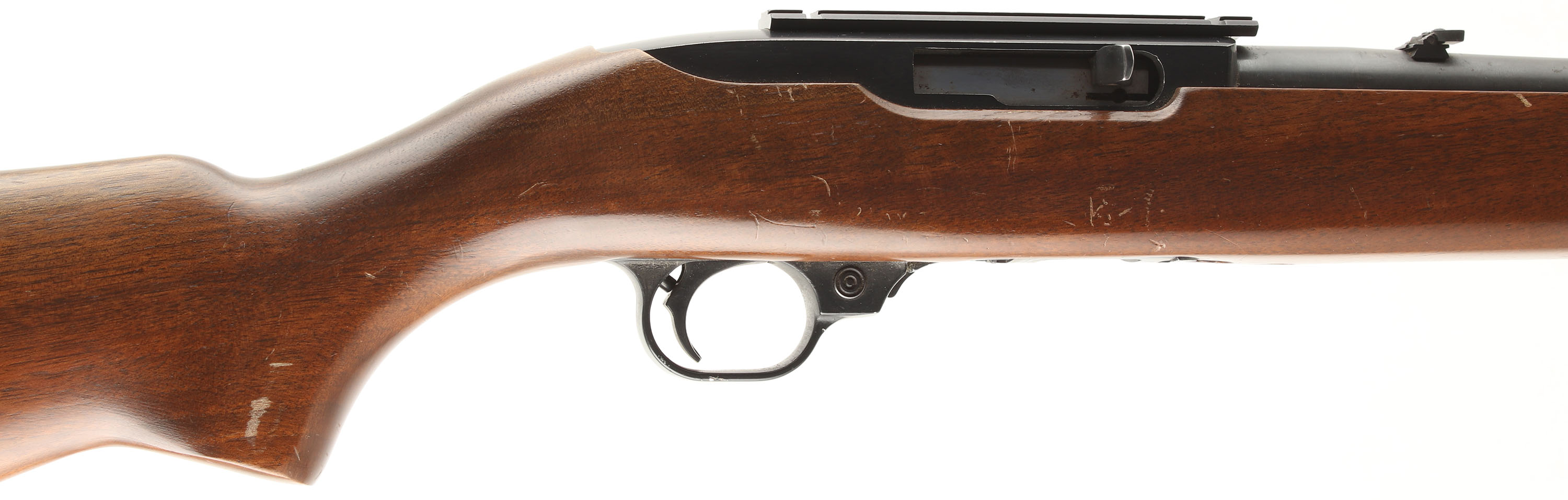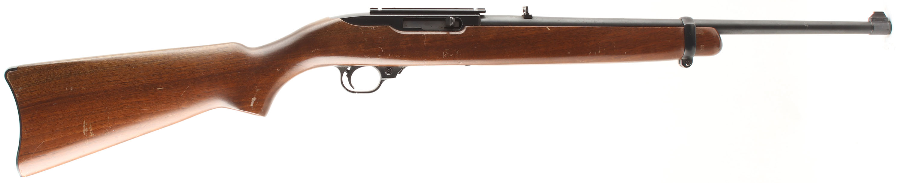 Ruger, Model 10/22 Carbine, CAL: 22 LR, MFG: 1971, SN: 110-79848, Semi Auto Rifle, 18 1/2'' barrel. The flat pistol grip wood stock is excellent , but with a number of small scrapes, scratches & contusions to the original finish. The metal blue finish rates 90%. Bore is excellent. The barrel holds a standard folding leaf rear sight & blade front sight. Top of the receiver caries a scope mounting bar for future scope mounting. Buttstock carries a smooth metal buttplate. FFL & C&R Req. - Value: 200 to 400