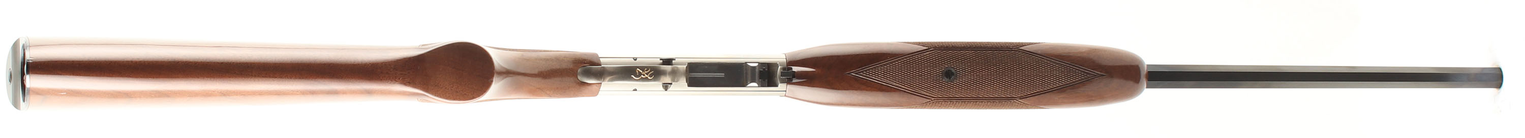 BOXED, Browning, Model SA-22 AUTOMATIC, JAPAN GRADE 2, CAL: 22LR, MFG: MOD, SN: BRJP02287YM212, Semi-Auto Rifle, 19 3/8'' Octagon barrel. The original checkered & flat pistol grip stocks are excellent, with a couple of tiny handling or storage marks to the excellent original high gloss finish. The metal blue finish on the barrel rates 99%. The silver receiver displays decorative scroll & vine engraving & rates excellent. Bore is excellent. The barrel carries factory sights. Original metal buttplate. BASICALLY NOS. Comes in SN matching factory box, with original booklet & & lock. Excellent overall. FFL Req. - Value: 1000 to 1500