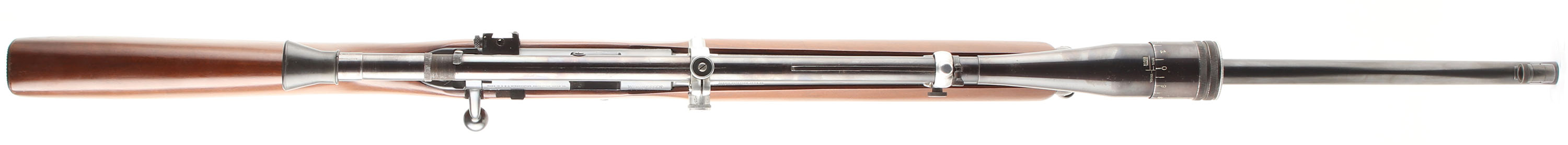 Winchester, Model 52-B Target Rifle, CAL: 22 LR, MFG: 1937, SN: 47612B, Bolt Action Rifle, 28'' Standard Target barrel. The original flat pistol grip & barrel banded forend wood stock is excellent, with light scrapes & scratches to the original finish. There is a bit of small spotty flaking on the right side of the stock. The original metal blue finish rates 95% overall. Bore is excellent. The rifle is fitted with a R.A. Litschert Model A 15 scope. The receiver carries a Lyman 48F sight base, but no adjustable sight piece. The barrel holds the factory scope blocks & a silhouette front sight. Proof stamping on receiver & barrel were correctly stamped to the left side allowing for the factory mounted scope. Buttstock carries a checkered metal buttplate. Sling loop on stock & front barrel band. Missing the detachable mag. An excellent & original condition, scoped 52-B target. FFL or C&R Req. - Value: 1000 to 1800