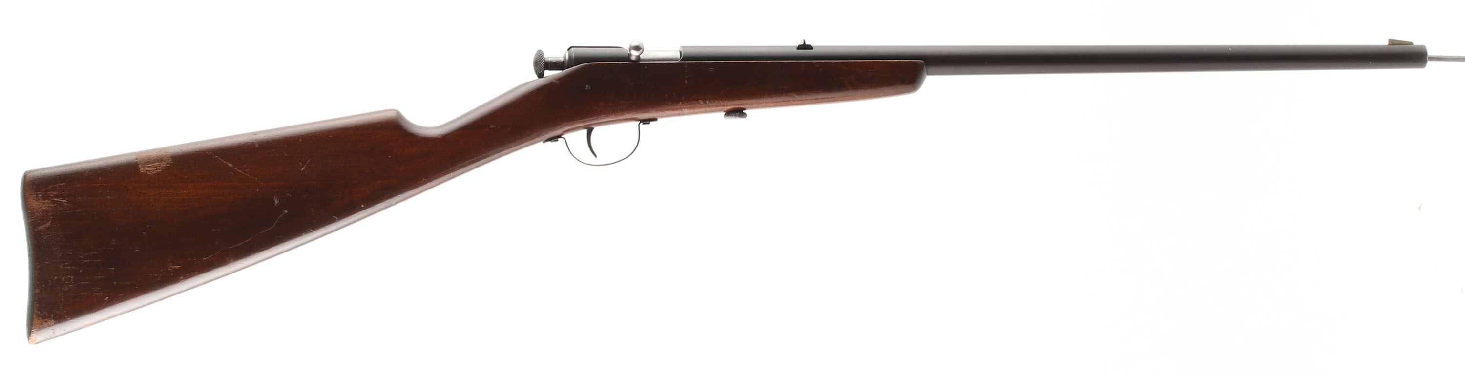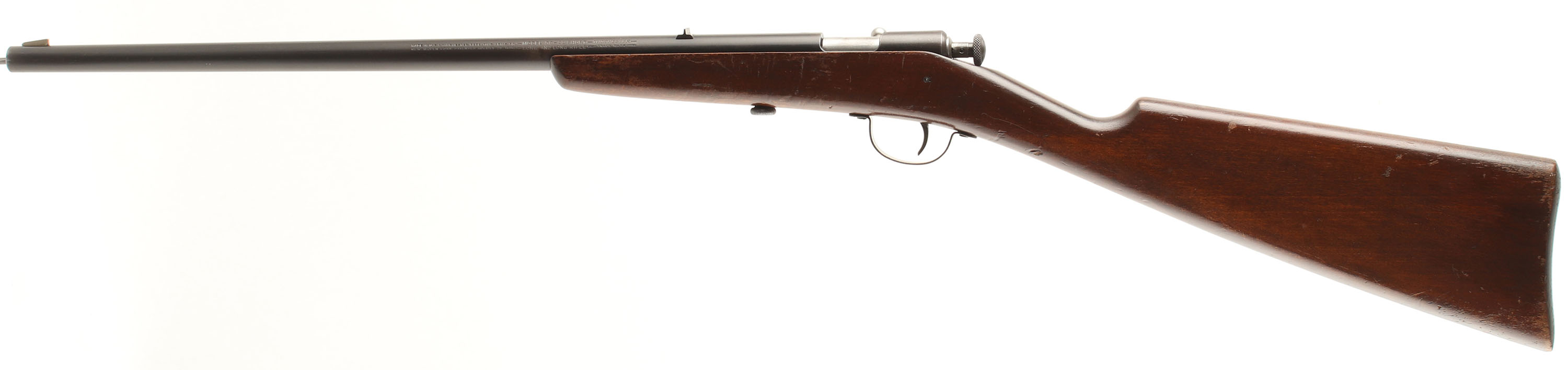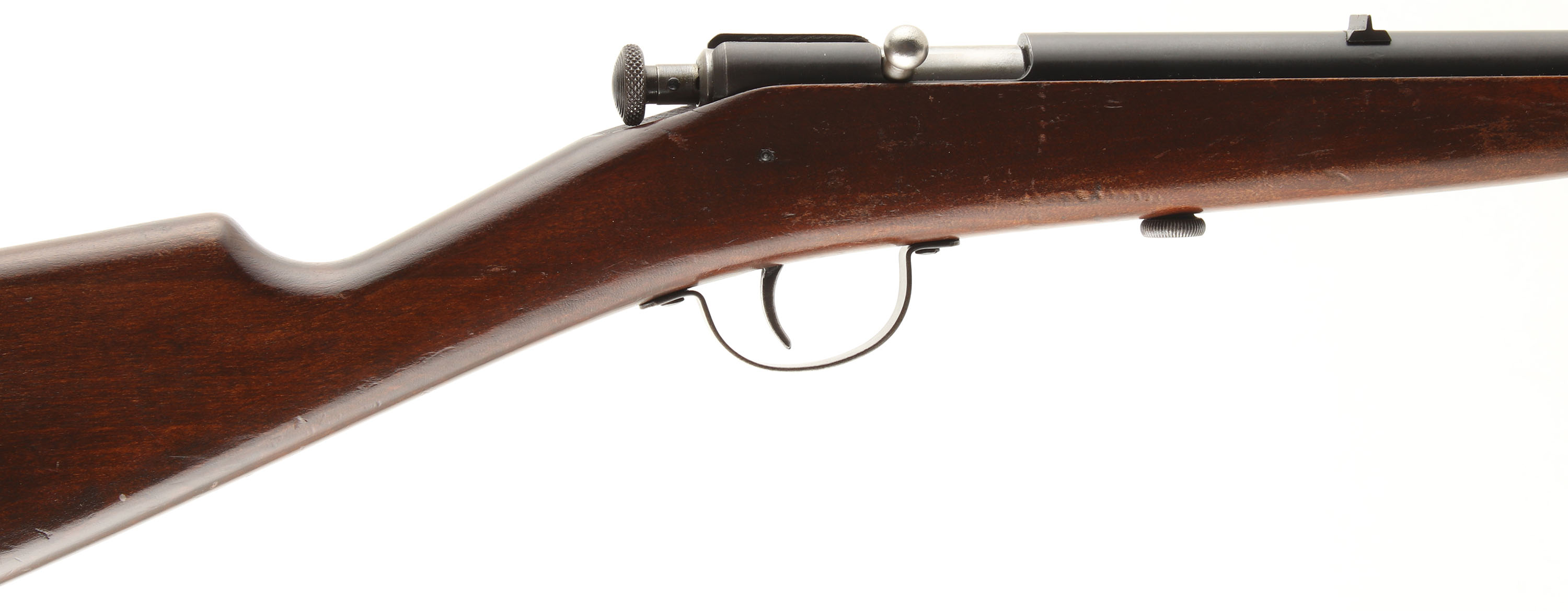 Winchester, Model 58, CAL: 22 S,L,LR, MFG: 1928-31, SN: NONE, Bolt Action Rifle, 18'' barrel. This is a fairly rare rifle as only 38,992 were produced during the four years of production. The straight grip gum wood stock is excellent, with a number of minor contusions or scrapes the very good original finish. The metal blue finish rates 85%, with loss due to density loss. Trigger guard shows more loss & is toning to a brown patina. Bore is excellent & bright. The barrel carries the factory fixed sights. Produced without a buttplate. A well above average as typically found. FFL or C&R Req. - Value: 300 to 600