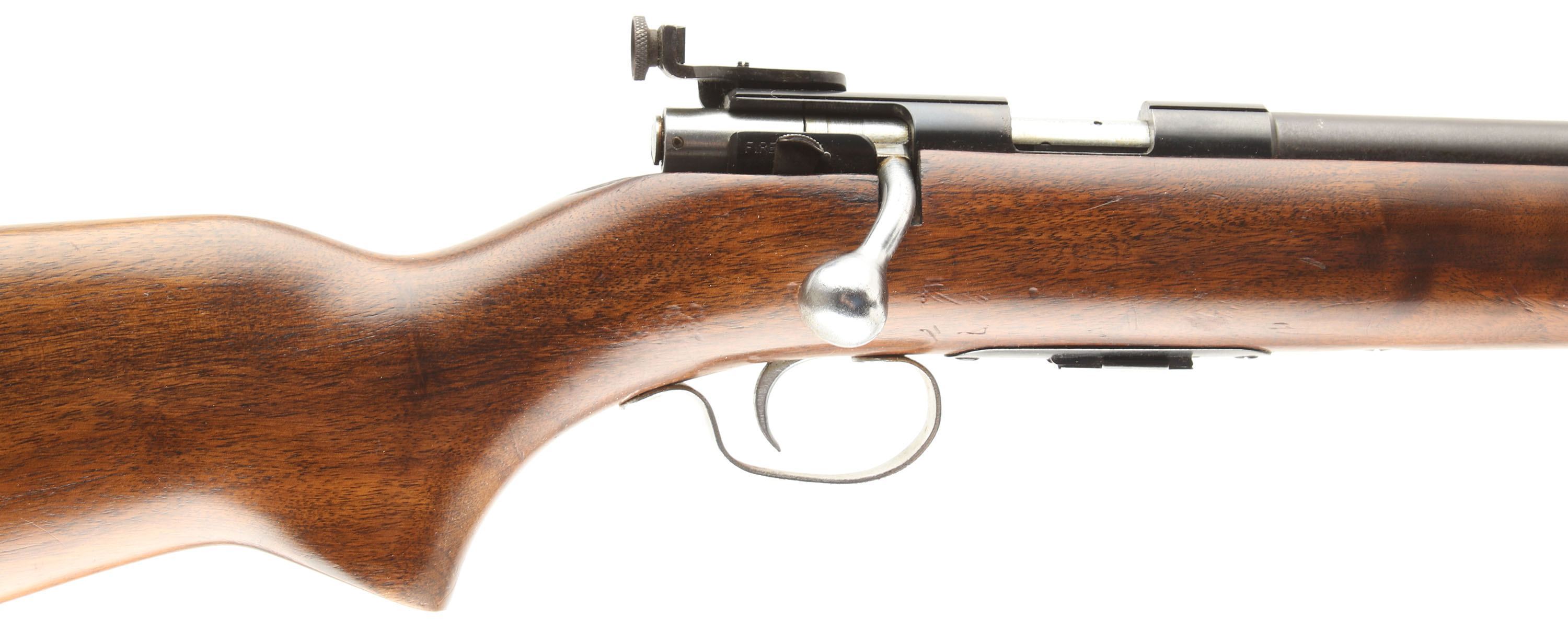 Winchester, Model 69A, CAL: 22 S,L,LR, MFG: 1935-63, SN: NONE, Bolt Action Rifle, 25'' barrel. Grooved receiver. The flat pistol grip & blunt nose forend wood stock is excellent, it exhibits the original finish, with several minor scrapes, scratches & contusions. The original metal blue finish rates 90% on the receiver & 85% on the barrel. Bore is excellent. The rifle is fitted with the correct receiver mounted aperture disk rear sight & hooded ramped blade sight. Buttstock carries a Winchester marked, checkered black plastic buttplate. Nickeled bolt handle, trigger & trigger guard. Comes with a Winchester stamped detachable magazine. FFL or C&R Req. - Value: 300 to 600