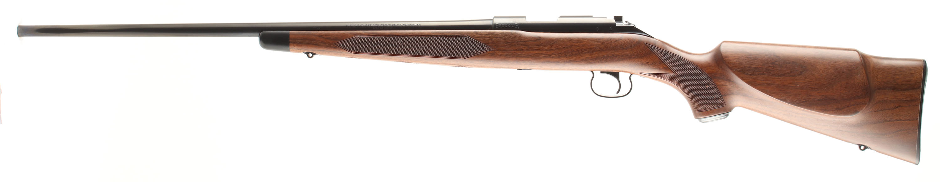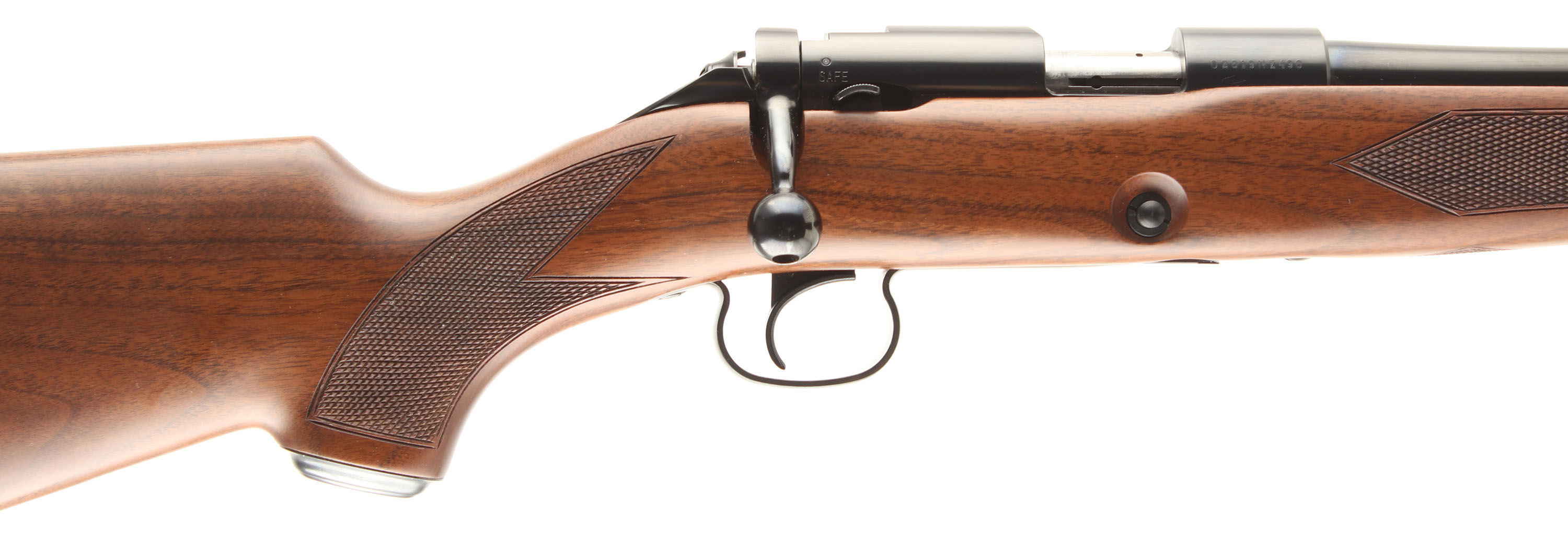 BOXED Browning, Model 52 Sporter, CAL: .22 LR, MFG: 1991, SN: 02819NZ496, Bolt Action Rifle, 24'' round barrel. The factory cheeked, checkered &capped pistol grip Monte Carlo walnut stock is near mint. Ebony forend tip. The factory metal blue finish is 100%. No open sight provisions on barrel. Mint bore. Browning plastic buttplate. Sling provisions. Browning detachable mag. Comes in the SN matching original box, with Browning scope block & paperwork packet. Basically NOS. FFL Req. - Value: 1000 to 1300