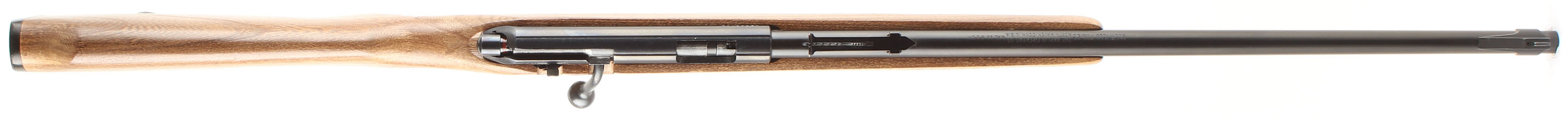 Marlin, Model Glenfield 25, CAL: 22 S.L.LR, MFG: 1971-82, SN: 25603714, Bolt Action Rifle, 22'' barrel. The flat pistol grip wood stock is excellent, with a few tiny handling marks to the excellent original finish. The original metal blue finish on the barrel & receiver rates 95%. Bore is excellent & bright. Barrel carries an adjustable rear & a ramp/blade front sight on a barrel band. Checkered, black plastic buttplate. Sling loops. Silver trigger. Missing the detachable mag. FFL REQ - Value: 150 to 300