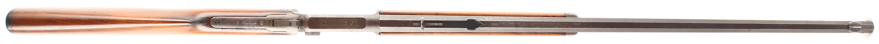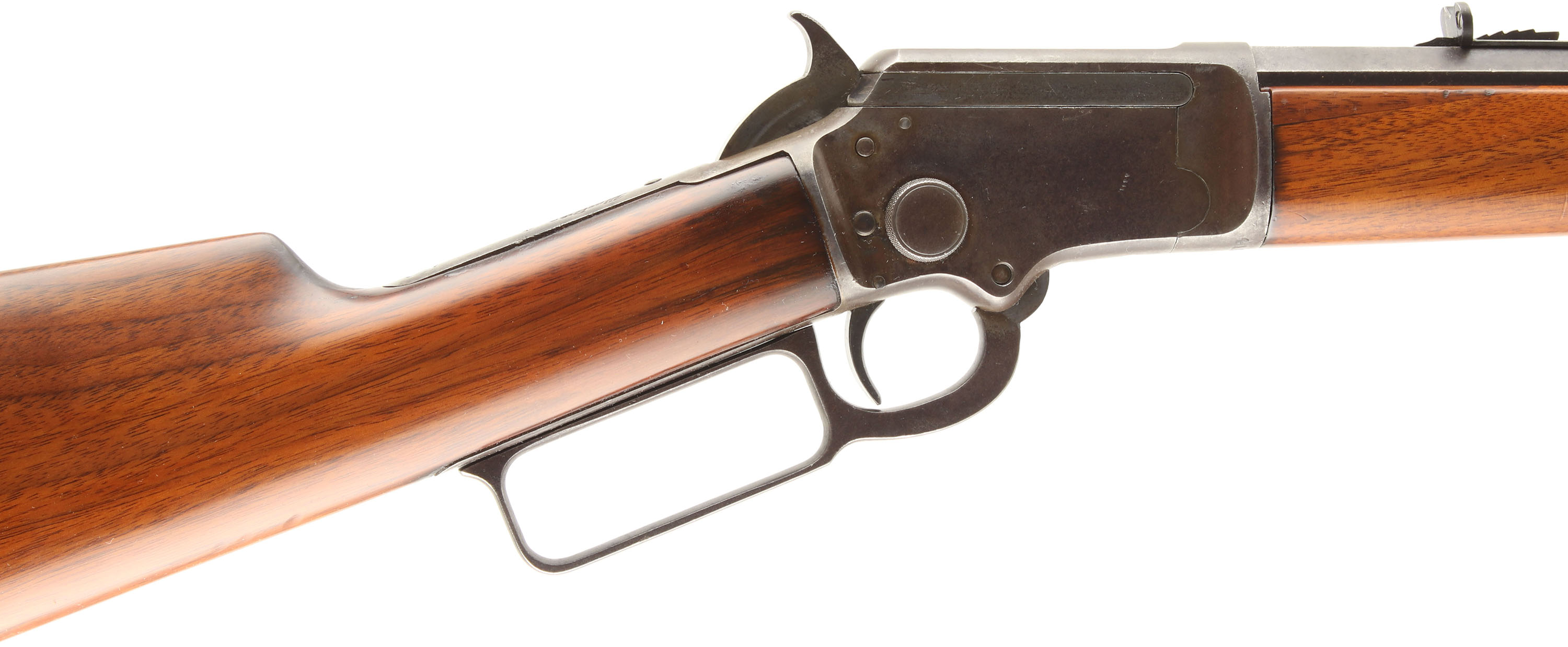 Marlin, Model 97, .22 S. L. LR Cal., MFG. 1910, SN: 411804, Lever Action Rifle, 24'' Octagon barrel, The original wood stocks are very good, as having been sanded & nicely refinished. There are several minor contusions, scraps & scuffs to the very nice high gloss finish. The metal sits proud to the wood along the edges of the tangs & receiver. The metal on the barrel & tube has worn mostly gun metal gray, with a thin spotty brown patina. The case-hardened receiver & lever has also faded to gun metal gray, with a thin brown patina, Bore is very good. The barrel carries an adjustable rear & low profile blade front sights. The stock carries a Marlin checkered plastic buttplate. Tight smooth action. FFL or C&R Req. - Value: 400 to 800