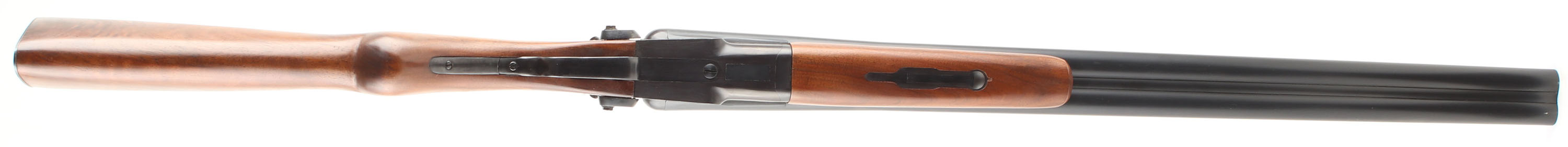CFA's Pt. F.A. Mfg. Co. (Cimarron), Model 1878, CAL: 12GA, MFG: Modern, SN: P-07410, Break Action SxS, Choke: Cyl/Cyl, 3'' Chamber, 36'' barrels. Factory markings on the barrel & sides of receiver. The original round knob wood stocks are excellent. There are only minor handling/storage marks to the finish. The factory blued finish rates 99% overall. Bores are excellent. The grooved rib holds a brass bead. Stock has a smooth metal buttplate. Double triggers. Consignor states unfired outside factory. FFL Req. - Value: 600 to 800
