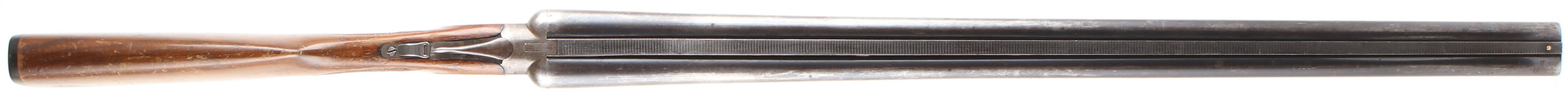 J. Stevens Arms & Tool Co., Model 355, CAL; 12GA, MFG: 1907-16, SN: 5706, Break Action SxS, 30'' barrels. The checkered, capped pistol grip stocks are very good & solid. There are surface level scrapes, scratches, dings & areas of flaking/thinning finish. The forend has been sanded & refinished, with smoothed contusions, dings & scrapes. The original blued finish on the barrel has worn to a mix of metal gray, brown patina & remaining blue. The case-hardened frame retains a few visible area of case-color, but mostly worn to metal gray & toned to a brown patina. Bores are very good & bright, with striations from use. The solid matted rib holds a single front bead. Stock has a factory Stevens checkered plastic buttplate. Back trigger does not fire. We recommend this shotgun be inspected by a licensed gunsmith before use. SOLD AS IS NO RETURNS. FFL or C&R Req. - Value: 100 to 250