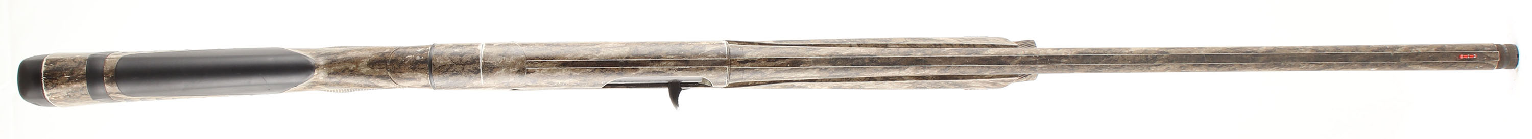CASED, Benelli, SBE III, CAL: 12GA, MFG: Modern, SN: U669086B, Semi Auto Shotgun, Screw-in Chokes, 26'' ventilated rib barrel. Standard factory markings. The factory checkered synthetic stock is excellent. The MossyOak Borderlands camo finish is very good, with some small areas worn to white. The camo finish on the barrel & receiver rates 85% overall. Bore is excellent. The ventilated rib holds a red fiber optic front sight. Comfortech stock & recoil pad. Sling provisions. The foremost vent opening is bent down towards the barrel. Comes in factory hard case, with choke tubes, tool, & original packaging. FFL Req. - Value: 1000 to 1400