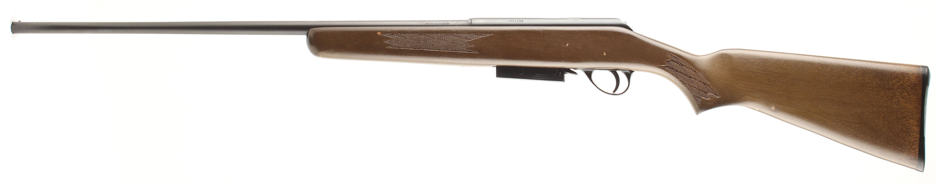 Savage/Stevens Model 58 Series F, CAL: 410 GA, MFG: 1978, C821232, Mag Fed Bolt Action Shotgun, 24'' barrel. The press checkered original wood stock is excellent. There are minor surface scrapes & small spots of thinned/flaked finish. The blued finish on the barrel rates 95% & the receiver rates 90%, with a small area of repair around the groove serrations on the top rear side of the chamber opening. Bore is excellent. Barrel holds a steel bead. Stock has a grooved plastic buttplate. Factory mag. FFL or C&R Req. - Value: 150 to 350