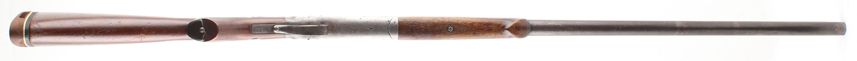H.S.B & Co. Rev-O-Noc, CAL: 12GA, MFG: N/A, SN: 83513, Break Action Single Shot Shotgun, Choke: Full, 30'' barrel. The original checkered flat pistol grip stock is good & solid. There is a bolt through the middle of the wrist, along with scratches, scrapes, dings & areas of thinning finish. The grip cap is broken. The blued finish on the barrel has worn to a mix of metal gray, brown patina & remaining finish. The receiver has fully worn to metal gray, with areas toned to a brown patina with intermittent spotting. Bore is good & bright, with intermittent pitting, scarring & roughness. The solid matted rib holds a single front bead & the stock has an oversized Pachmayr ventilated brown rubber recoil pad. FFL or C&R Req. - Value: 100 to 200