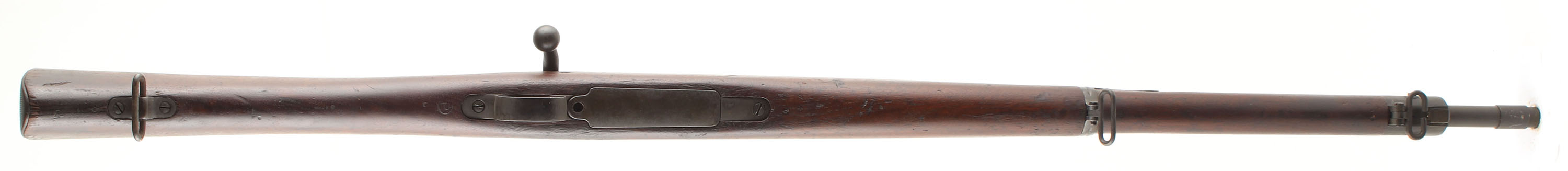 CONDITION: The straight wrist walnut stock is very good with various nicks, dings, scratches & gouges from use. The left flat of the stock is stamped ''RA-P'', ''RLB'', ''BA-WL''. The ''RA-P'' is a inspection/overhaul mark for the Raritan Arsenal in New Jersey during the war, the ''RLB'' is the initials for inspector Col. Roy L. Bowlin, who was the chief of the Rochester Ordnance District & his initials can be found Earlier Remington M1903 rifles. The ''BA-WL'' stamp means it was refurbished at the Benicia Arsenal in California some time during or after the war, & the ''WL'' mark is the inspector. The both of the wrist has the ''P'' in circle firing proofs & just in front of the magazine is four faded proof marks. The upper handguard is stamped ''D28179''. The metal carries a arsenal finish with some lightly thinned marks & a couple small spots of roughness under the finish. The green parkerized finish rates 97% overall with light wear & light scratches. The receiver band is marked ''U.S.'', over ''REMINGTON'', over ''MODEL1903'', over the S/N. The top end of the barrel is marked ''RA'', over flaming bomb, over ''9-42''. Bottom end of the barrel marked ''P''. Rear barrel band marked ''U''. The bolt handle is marked ''X'' indicating it was made by Commercial Controls, they made replacement 03-A3 bolts for rebuilding during WW2. Firing pin & magazine cutoff lever marked ''R'' for Remington. The bore is very good near excellent. It's bright & shiny with lightly thinned rifling. The barrel holds a blade front sight with a flip up ladder U-notch/ aperture rear sight marked 3 to 27. The stock carries a checkered, parkerized steel trapdoor buttplate. has some wear to checkering, nothing inside trapdoor. The stock carries both factory sling loops with the third stacking loop. FFL or C&R Req. - Value: 700 to 1400