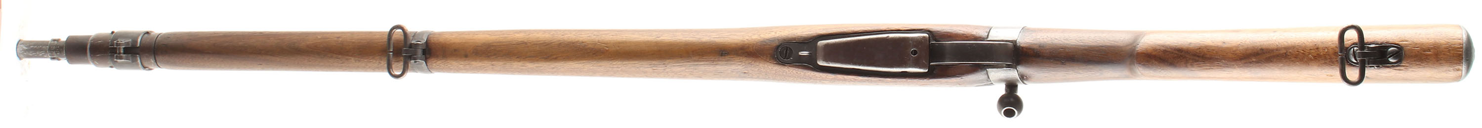 CONDITION: The semi-pistol grip, two-piece beech stock is very good with superficial nicks, dings, & scratches from use as well as some vice marks. The metal is slightly proud to the wood around the buttplate & wrist. The bottom of the wrist has a faded ''X'' stamp, just in front of the magazine is marked ''T'', & just before the front barrel band, on the bottom of the forend is marked with a faded 2 digit number. The metal has toned to a even mix of thinned parkerization, gun metal gray & brown patina, with some spots on the receiver buffed gray by the importer. Rough machining marks from rushed war time production still visible. The left side of the wrist band is marked ''M47'', over ''1943'', over the S/N (these appear to have been restamped by a repair arsenal at some point with buff marks & older markings present under these markings). The left side of the receiver is marked ''1'', a faint ''NO4MK1'', & double stamped import S/N's (bottom number has been lined through & buffed). The end of the barrel is stamped with ''CAI'' import stamps. ''S'' (savage-stevens) marked front barrel band & magazine assembly/trigger guard. S/N mismatched bolt (AE9556) & unmarked mag. The bore is good. it's bright with proud rifling throughout that's slightly thinned at the muzzle & roughness throughout the bore. The barrel holds a square blade front sight with protective ears (there is a crack in the right ear). The receiver holds a L-leaf aperture rear sight. The stock carries a aluminum trapdoor buttplate. Plate has small nicks, & dings. Nothing inside trapdoor. Stock has both factory sling loops. Mechanical function appears solid. FFL or C&R Req - Value: 250 to 500