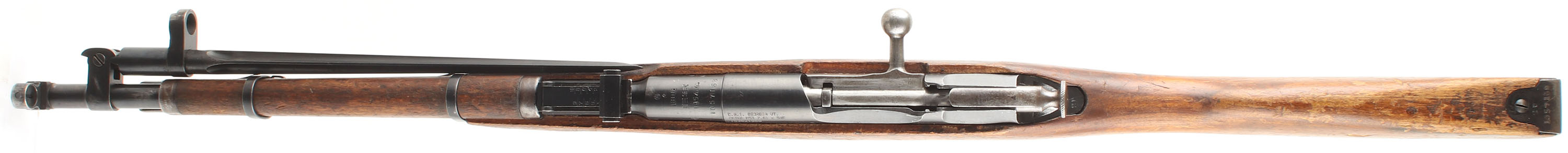 CONDITION: The straight wrist Chu wood stock is good with small nicks, dings, dents, scratches, & wear from use/age. Common handling spots have worn away the finish. There are many small worn cartouches on both cheeks of the stock, around both sides of the recoil lug, bottom of the wrist, top of the comb, & one faint stamp on the forend. The metal does not appear to have an arsenal refinish, but has some poorly struck markings that are not fully visible. The blued metal finish rates 96% on the receiver with light scratches & a couple speckles of rust. The finish on the barrel rates 93% with some light scratches & spots of wear on the top of the chamber & end of the barrel. Top of barrel is marked with a ''B'' like symbol in a circle, over ''H'', over ''296'' in a half box, over ''TYPE 53'' in Chinese, over ''1954.4'', over S/N, as well as a assortment of proof marks. Left side of receiver is marked with ''C.A.I.'' importer marks. Top of rear tang & buttplate tang have the same poorly struck ''20'' mark. S/N mismatched bolt (Russian with Izhevsk marked components). S/N matching magazine floorplate, & buttplate. Bore is good. has strong rifling but with light rust & roughness throughout the bore. Barrel holds a post front sight with protective globe, & a tangent U-notch rear sight marked 1 to 10. The stock carries a blues steel buttplate, worn gray on shoulder wear spots & has light brown patina speckling. Stock has factory sling wells & comes with a period correct, Chinese canvas sling with leather dog collars. Rifle has a cleaning rod & the affixed side folding, cruciform bayonet. Mechanical function appears solid. FFL or C&R req - Value: 250 to 500